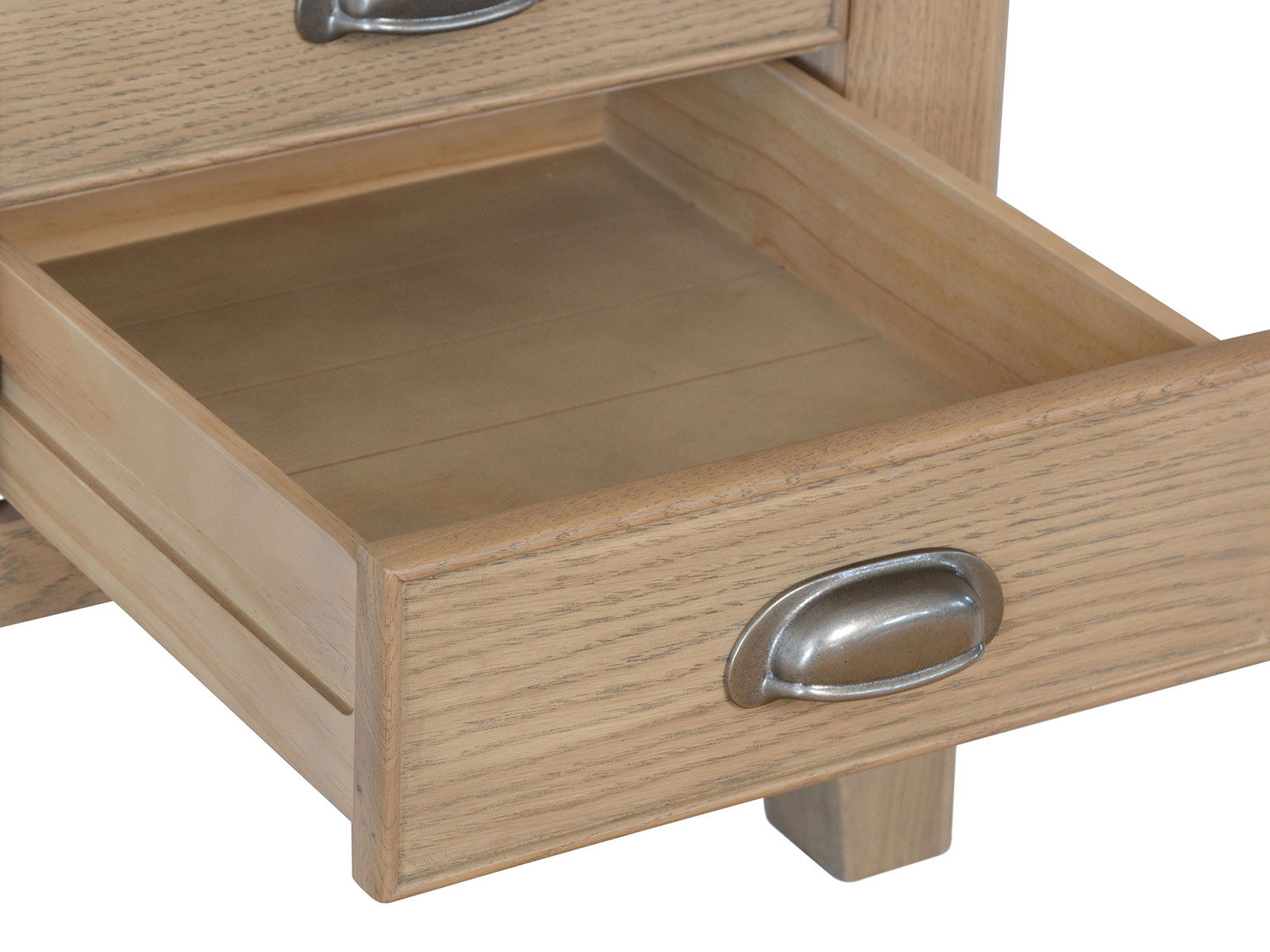 With a radiant warm oak finish, this collection brings a sumptuous and elegant traditional style that is set to complement any interior. Impressive quality runs through every detail, from the rounded corners and tapered legs to the thick oak tops and solid proportions.