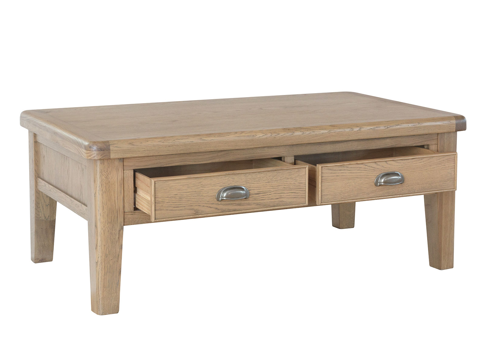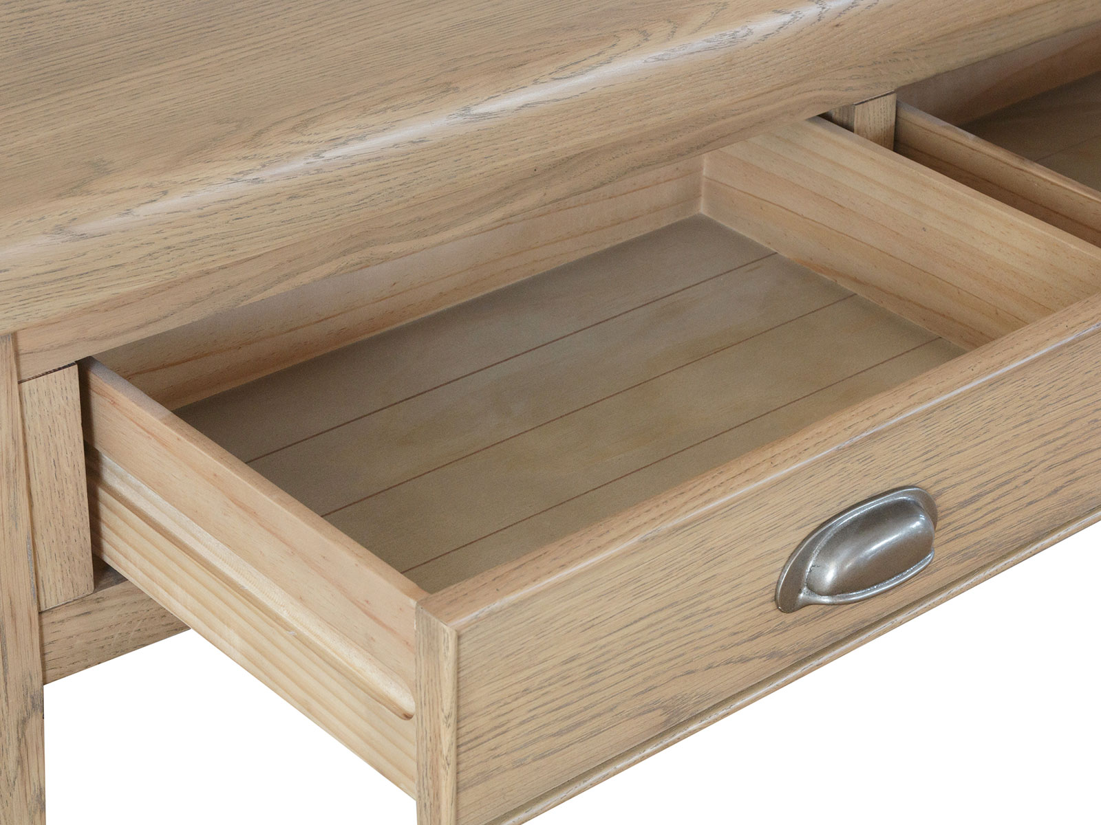 With a radiant warm oak finish, this collection brings a sumptuous and elegant traditional style that is set to complement any interior. Impressive quality runs through every detail, from the rounded corners and tapered legs to the thick oak tops and solid proportions.