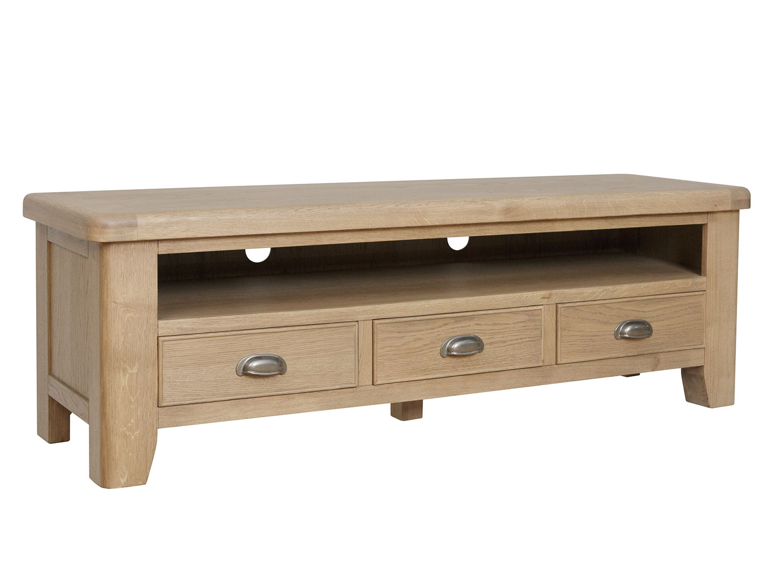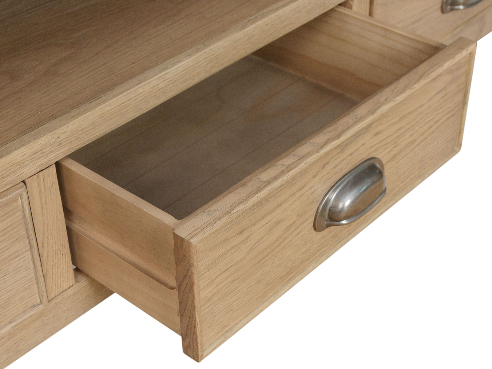 With a radiant warm oak finish, this collection brings a sumptuous and elegant traditional style that is set to complement any interior. Impressive quality runs through every detail, from the rounded corners and tapered legs to the thick oak tops and solid proportions.
