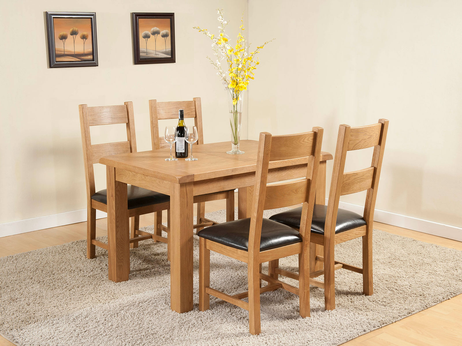 A range of rustic oak, which includes dining and occasional furniture. Each piece has a hand wax finish and is finished with antique brass hardware.