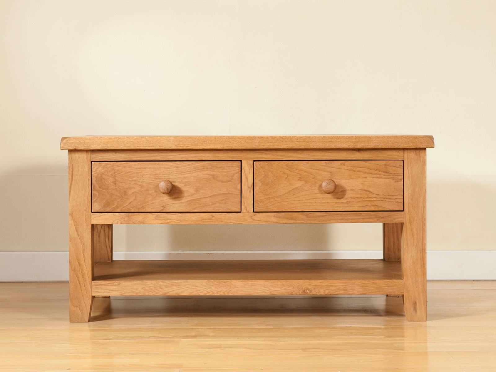 A range of rustic oak, which includes dining and occasional furniture. Each piece has a hand wax finish and is finished with antique brass hardware.