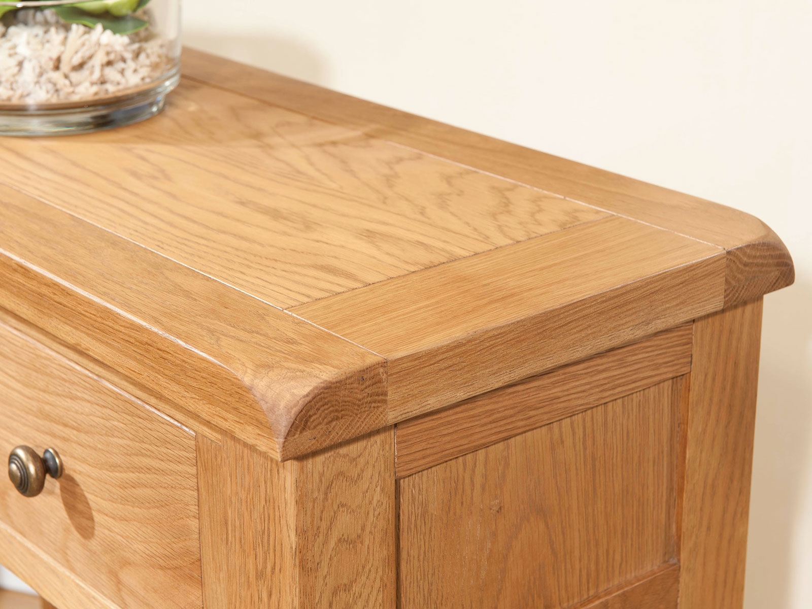 A range of rustic oak, which includes dining and occasional furniture. Each piece has a hand wax finish and is finished with antique brass hardware.