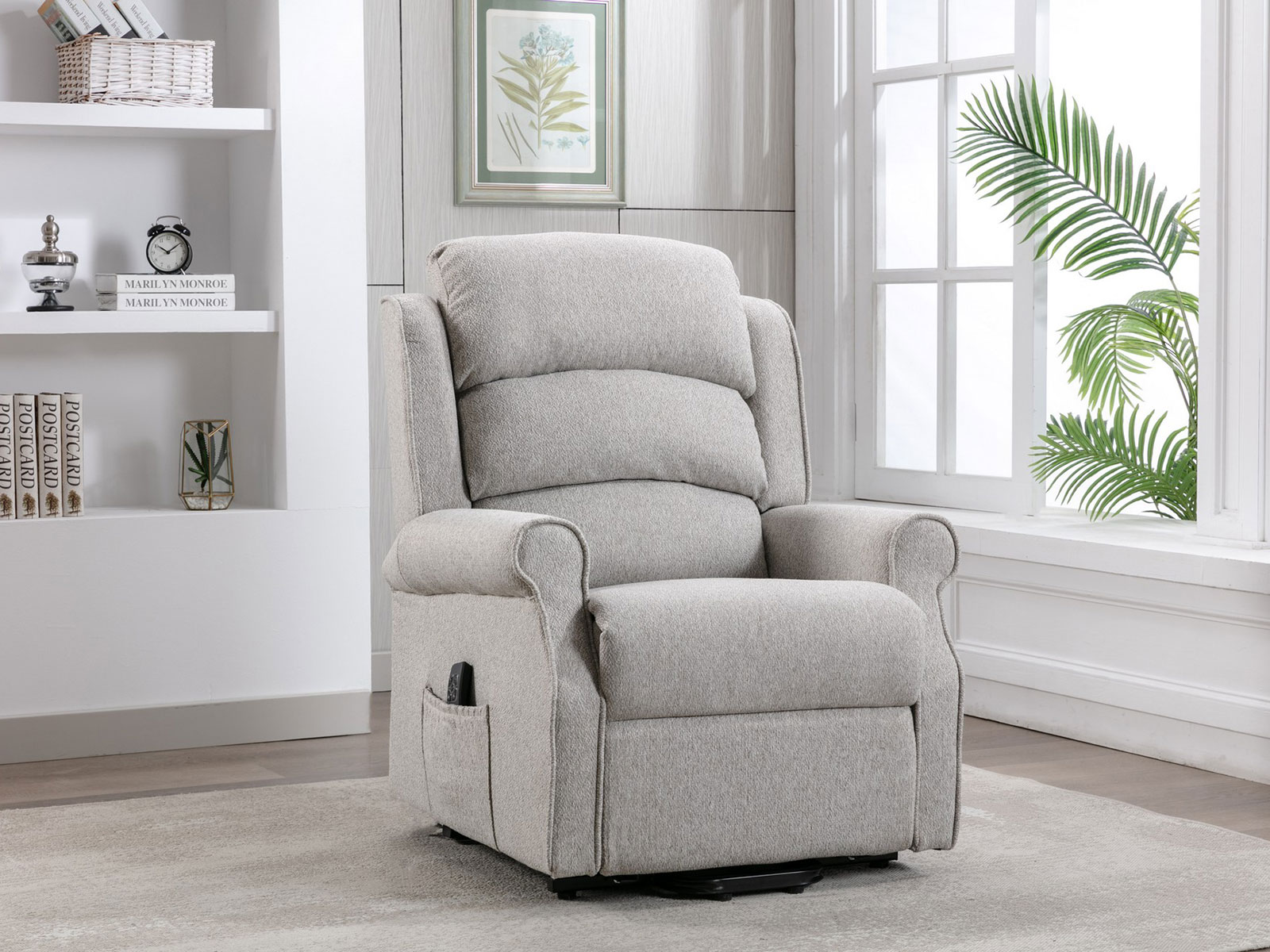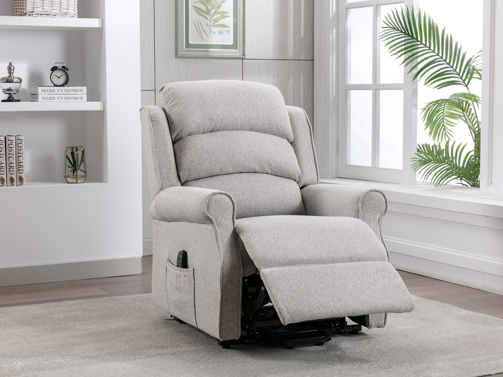 A stylish dual motor riser recliner upholstered in a soft tactile fabric, piped scroll arm detail and a sumptuous waterfall back for added comfort and support. This model features lift, rise and recline functions via the easy to operate handset and is ideal for individuals who have difficulty standing up and sitting down due to restricted mobility.