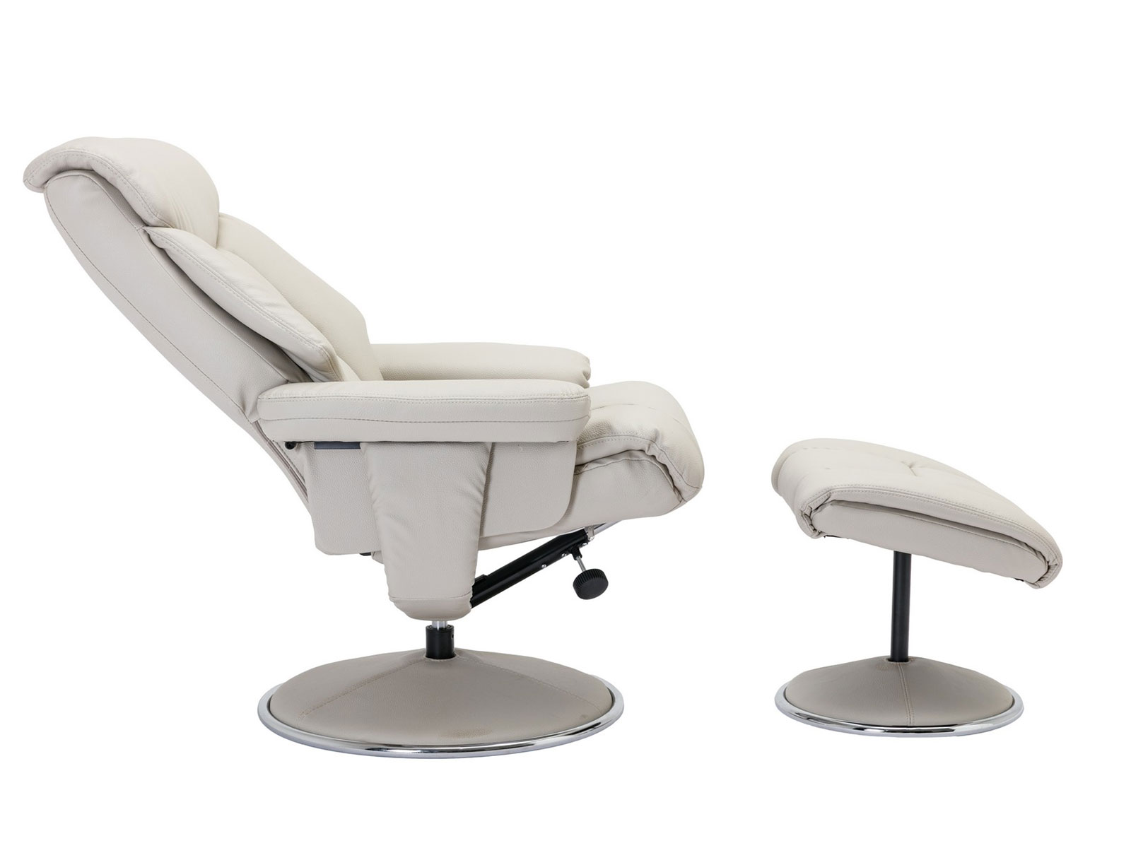 Relax, recline, swivel and put your feet up in sleek contemporary style. The Biarritz features a sumptuous headrest and wrap around arm cushions, with a smooth manual recline and 360 degree swivel. Available in a variety of complimentary plush and fabric upholstery, this chair will be the perfect addition to any home.