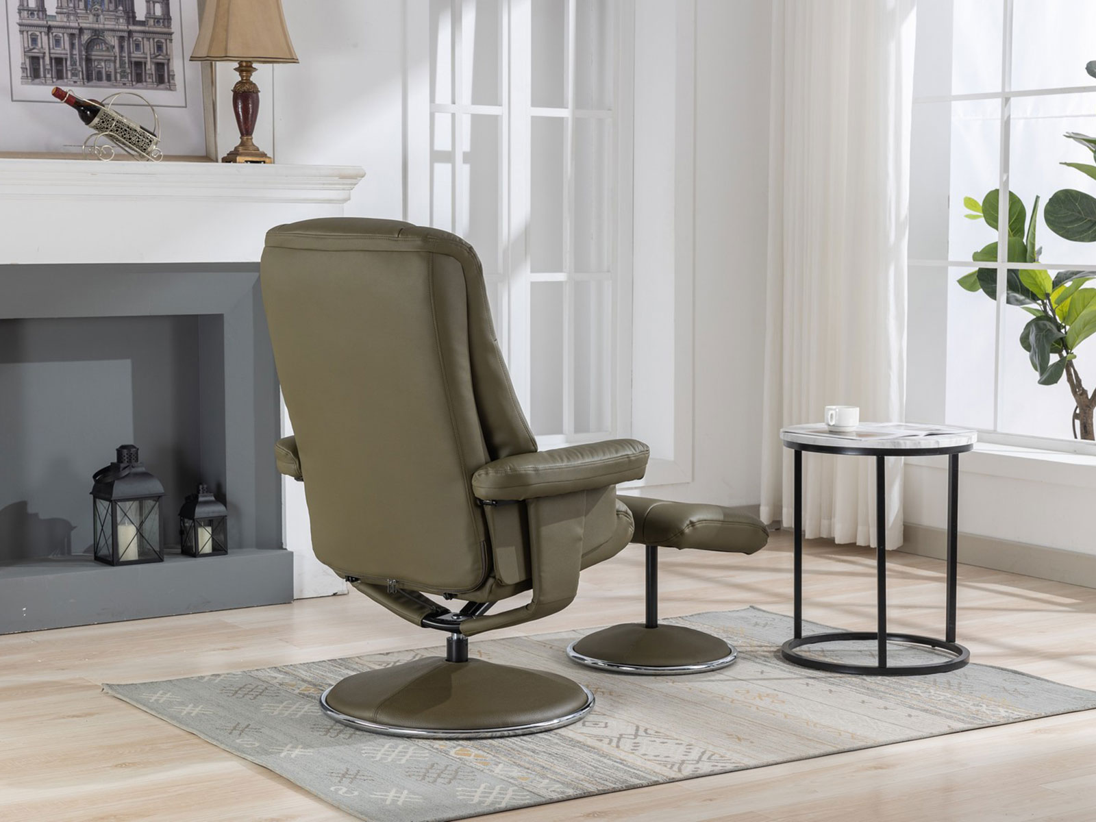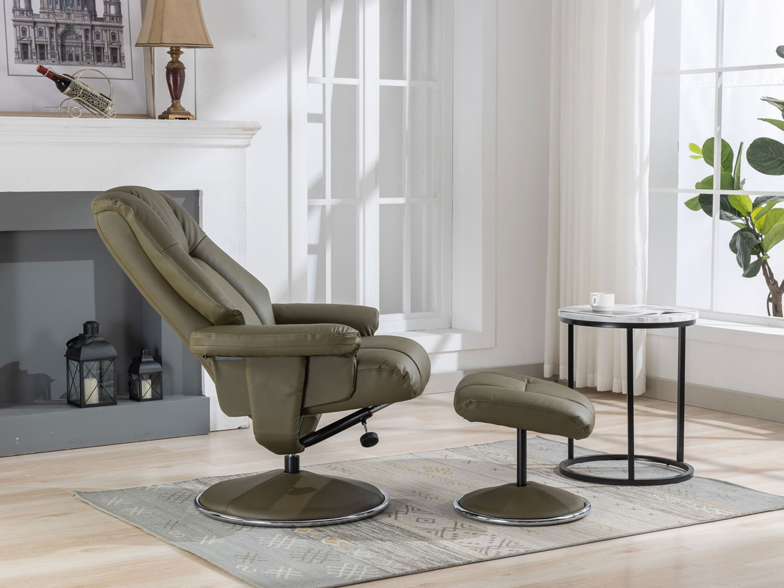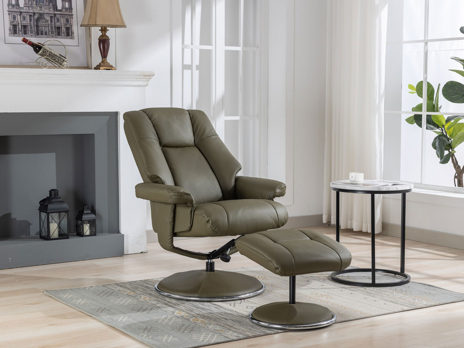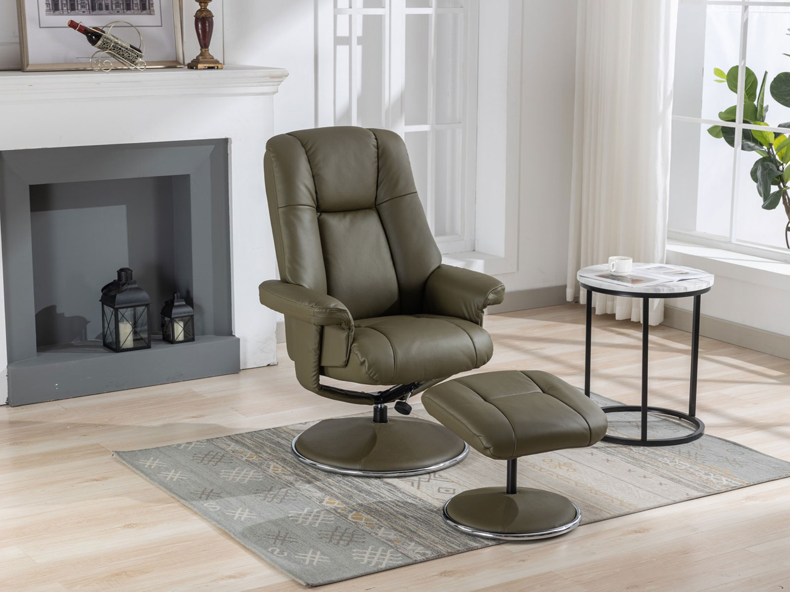 GFA Denver Swivel Recliner & Footstoolin Olive Green Leather