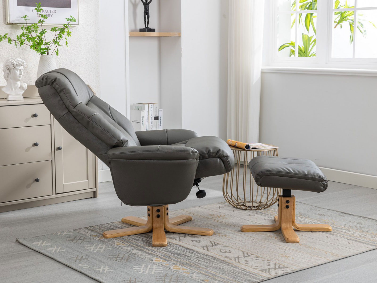 For beautiful tailoring and deeply cushioned comfort, look no further than the Dubai swivel recliner. Upholstered in plush faux leather and soft touch fabric, in a variety of chic shades to compliment any modern-day living space.