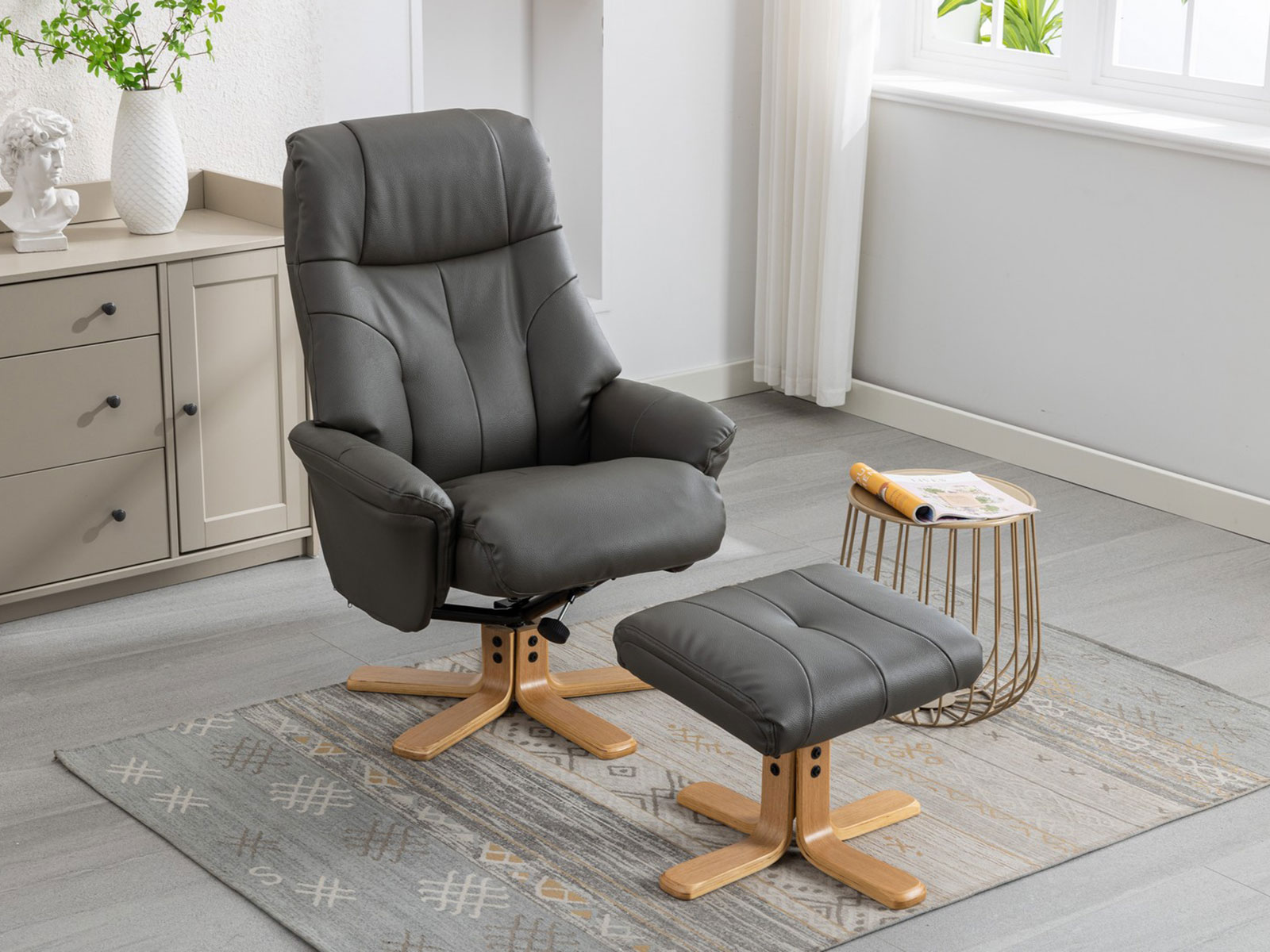 GFA Dubai Swivel Chair & Footstool in Cinder Plush