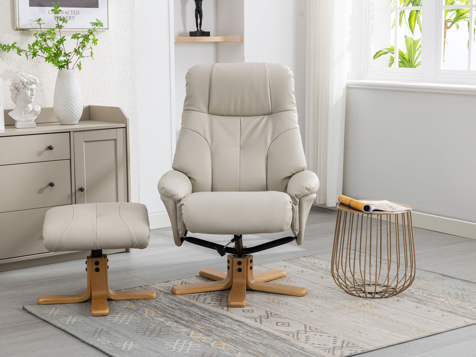 For beautiful tailoring and deeply cushioned comfort, look no further than the Dubai swivel recliner. Upholstered in plush faux leather and soft touch fabric, in a variety of chic shades to compliment any modern-day living space.