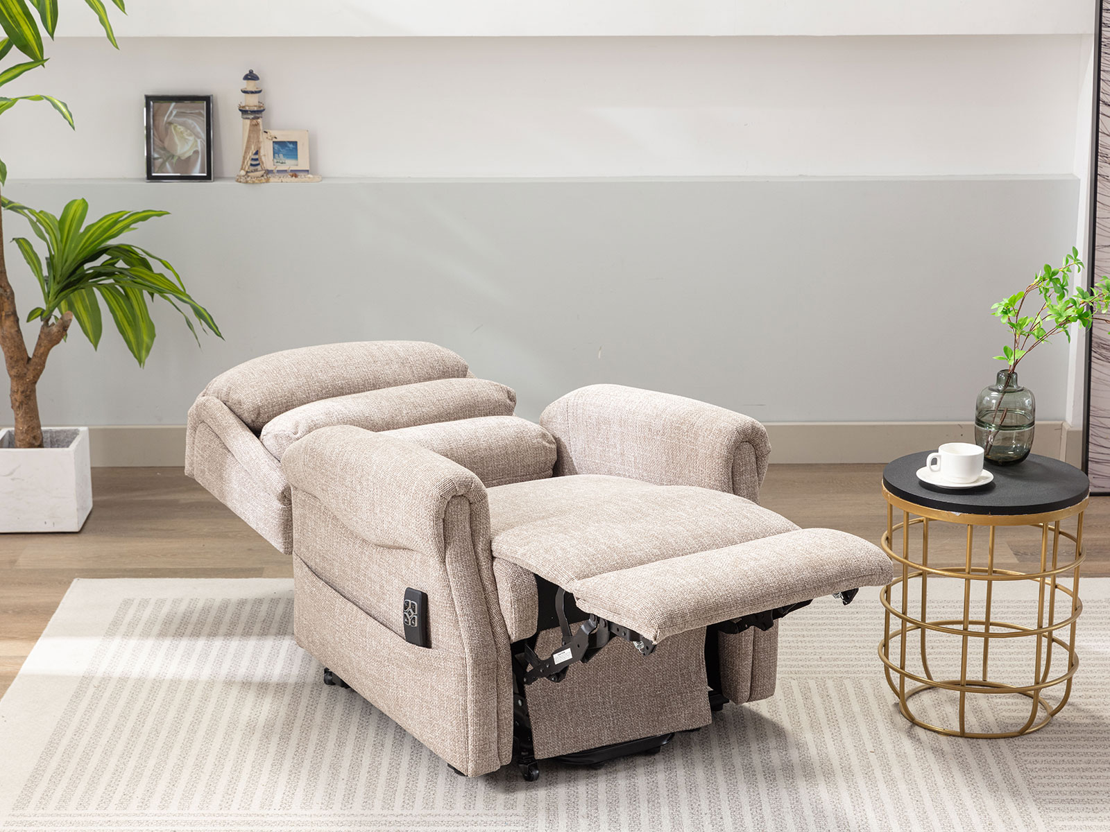 The Luxembourg dual motor riser recliner provides ultimate comfort, with its undeniably soft woven fabric, this chair is not only comfortable but also stylish. The lift, rise and recline functions are easily operated via the handset, making it an ideal choice for individuals who have difficulty standing up and sitting down. The dual motor system of the Luxembourg allows independent control of the backrest and footrest, providing a virtually unlimited range of seating positions.