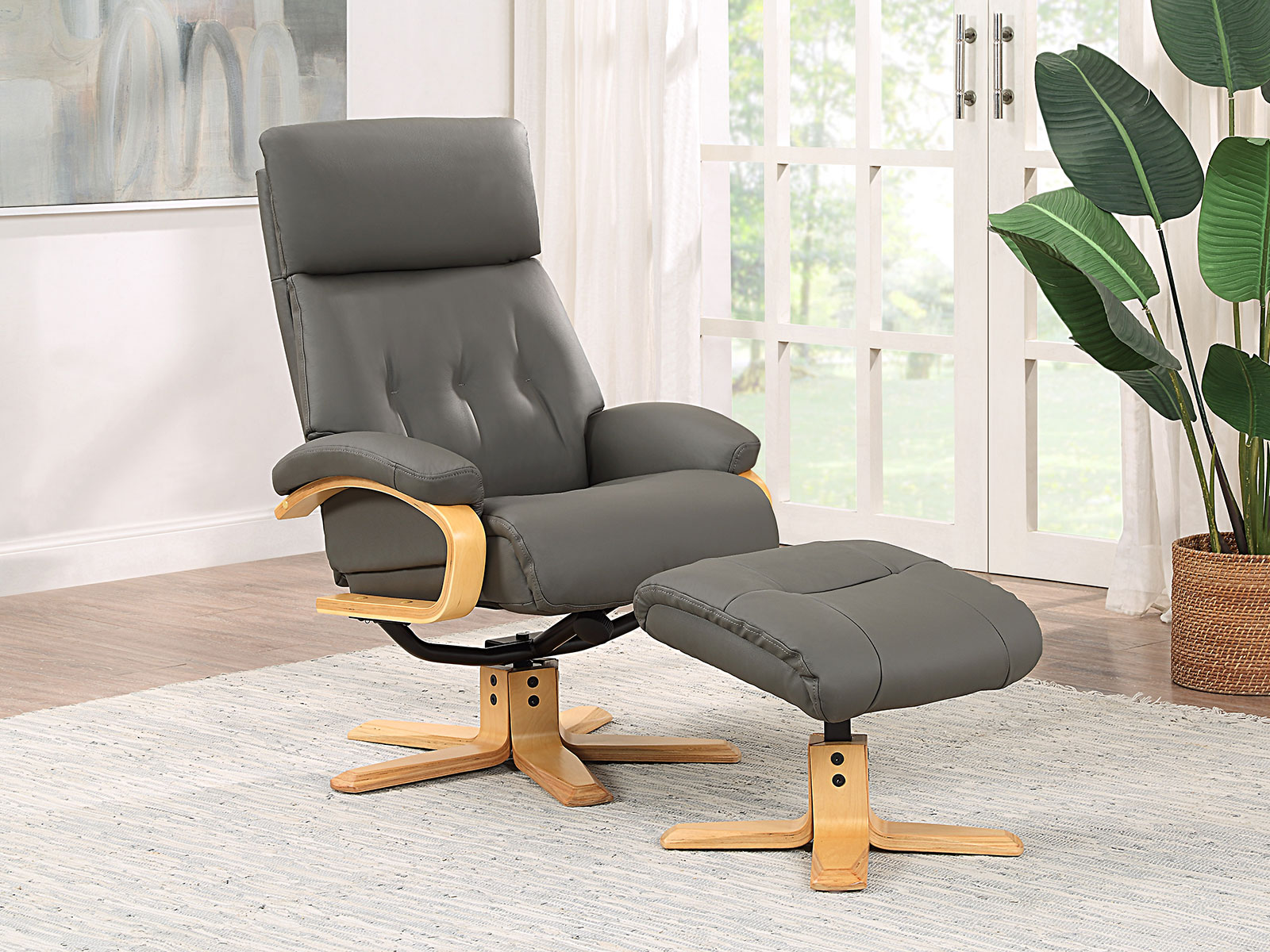 GFA Vienna Swivel Recliner & Footstool in Charcoal Leather