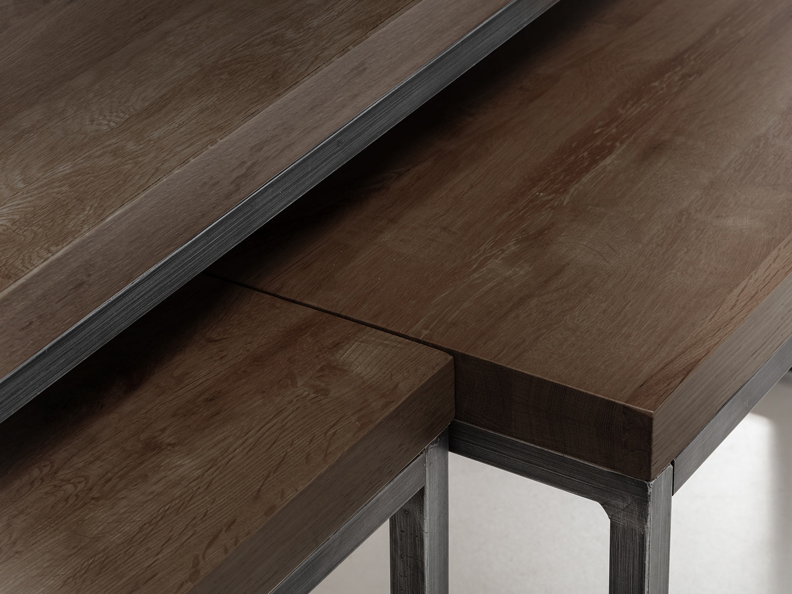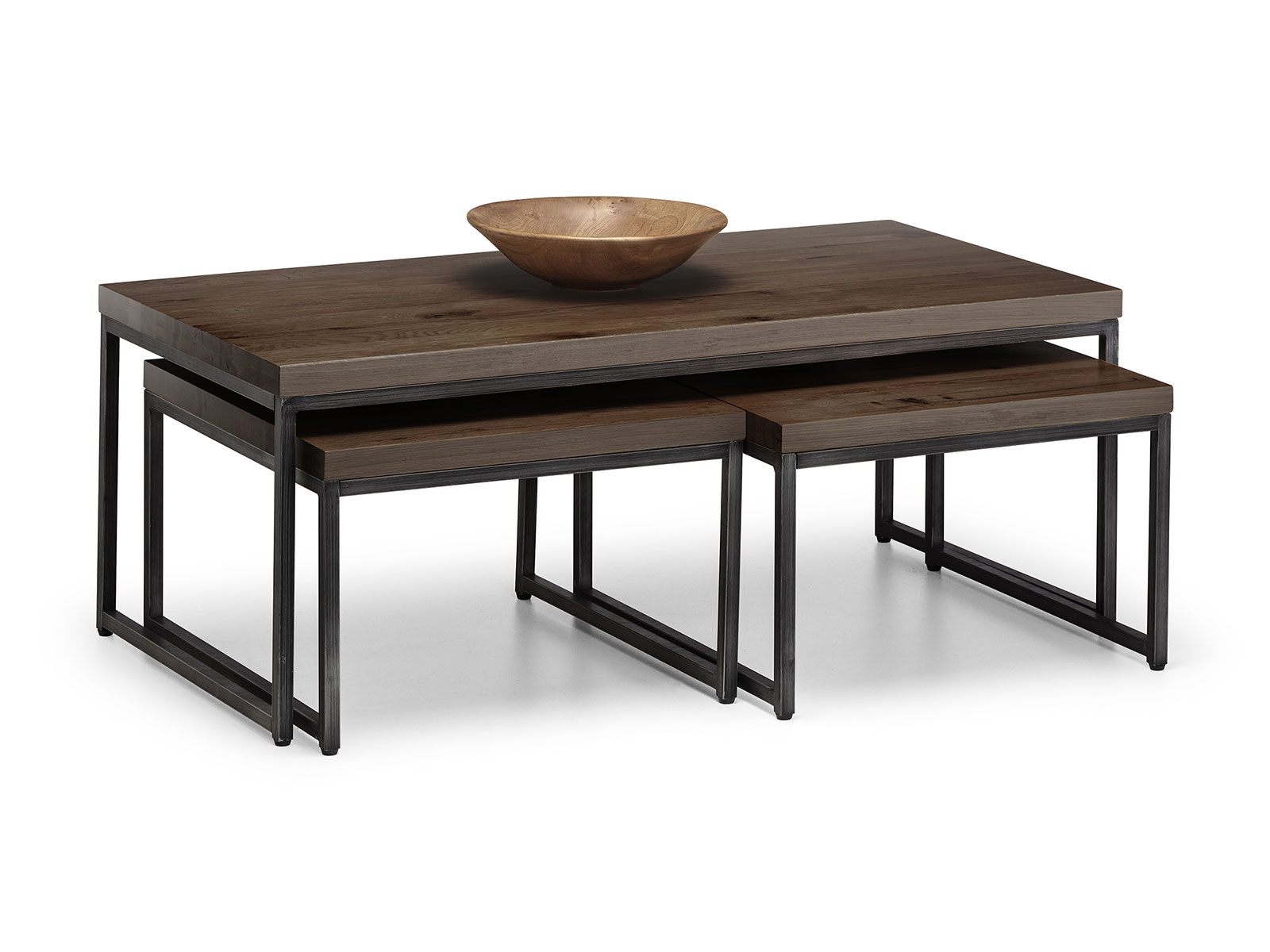 Made from solid oak, these nesting coffee tables offer a rustic dark oak finish emphasising the stunning natural wood grain. The Brooklyn Nesting Coffee Tables offer a vintage edge featuring industrial style metal legs. These Coffee Tables can be stored away under eachother when not in use, creating a space saving solution perfect for a wide range of modern décor. Part of the Julian Bowen Brooklyn Dining and Occasional Collection.