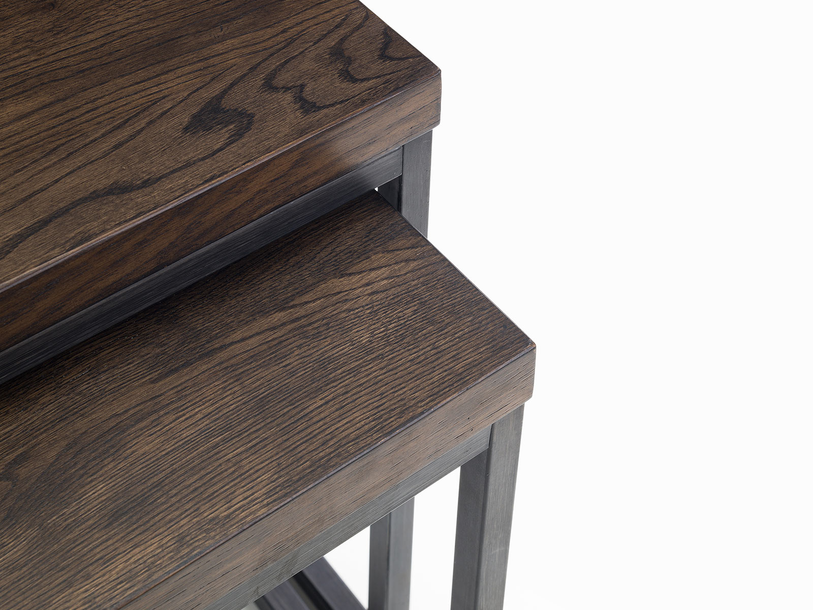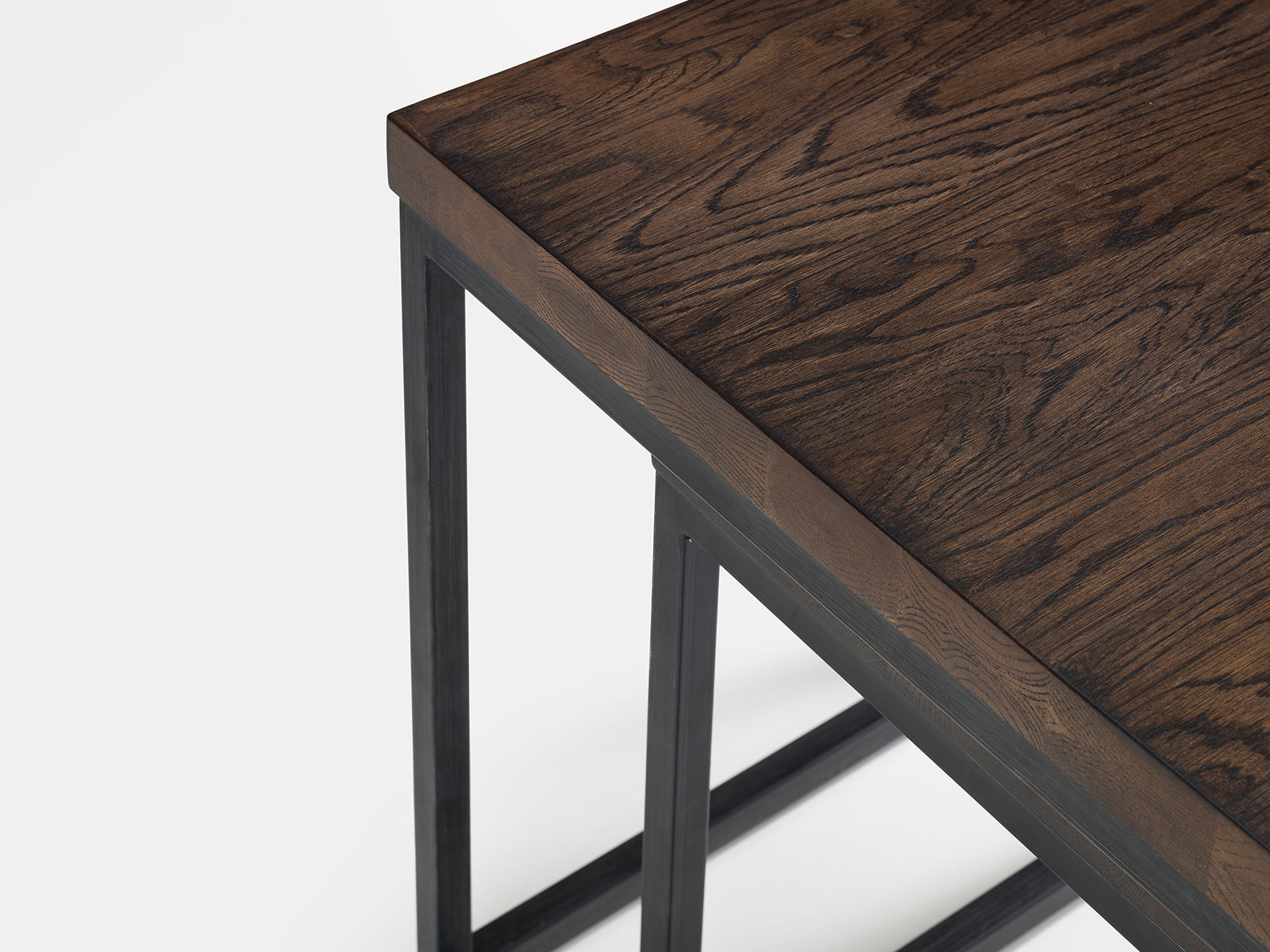 Made from solid oak, these Nesting Lamp Tables offer a rustic dark oak finish emphasising the stunning natural wood grain. The Brooklyn Nesting Lamp Tables offer a vintage edge featuring industrial style metal legs. Stylish, functional and well proportioned, these lamp tables are a perfect space saving solution suitable for a wide range of modern décor. Part of the Julian Bowen Brooklyn Dining and Occasional Collection.