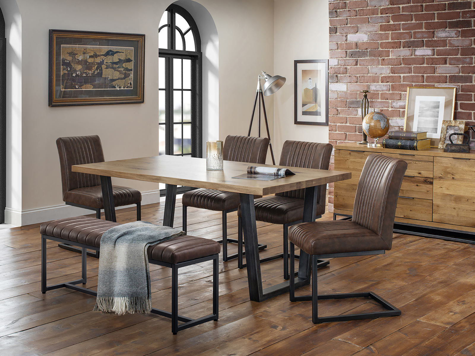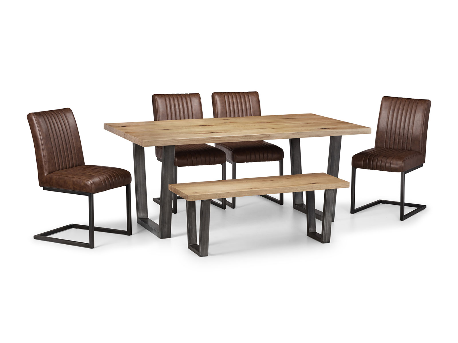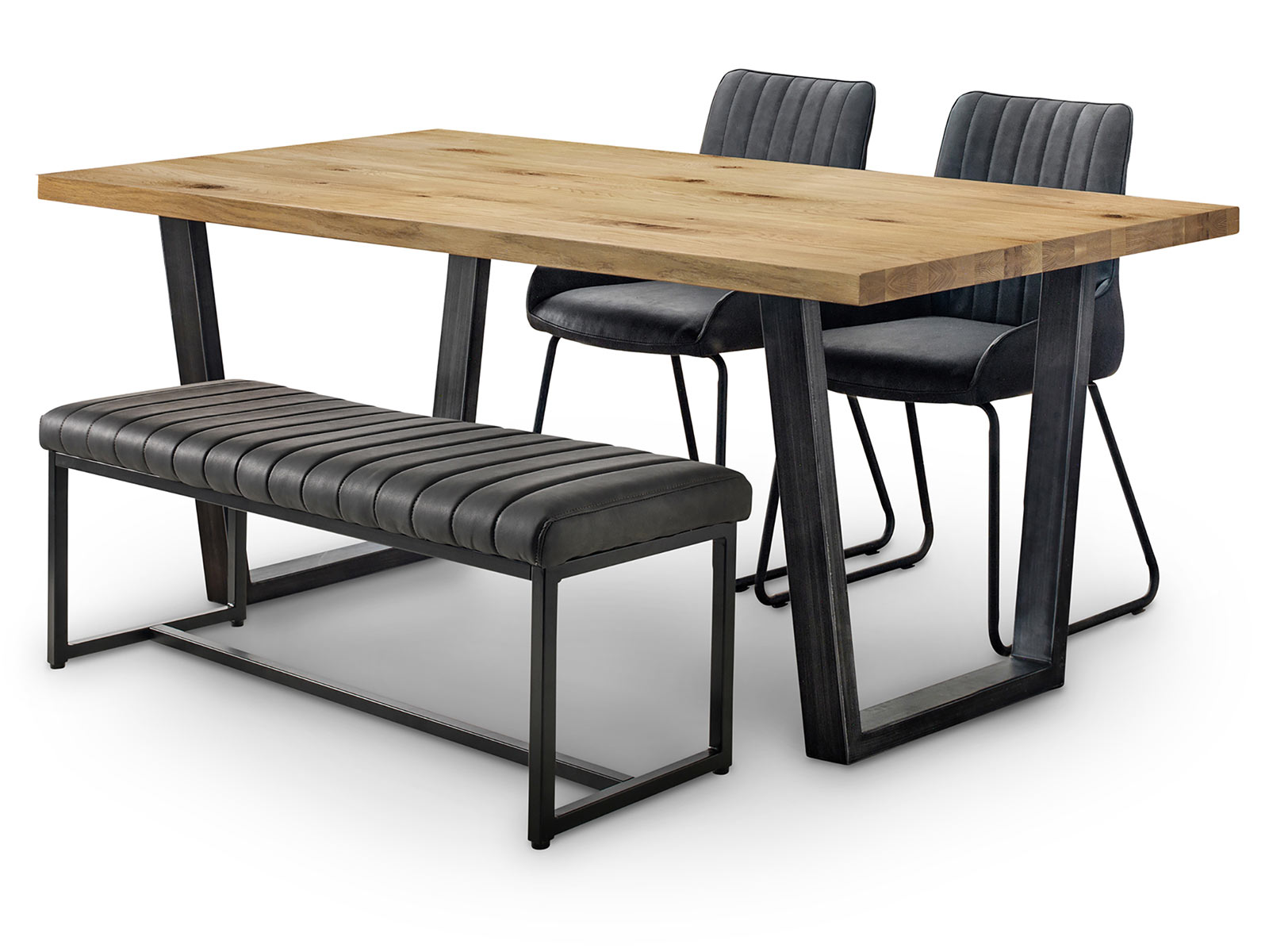 • Featuring metal industrial trapeze style legs