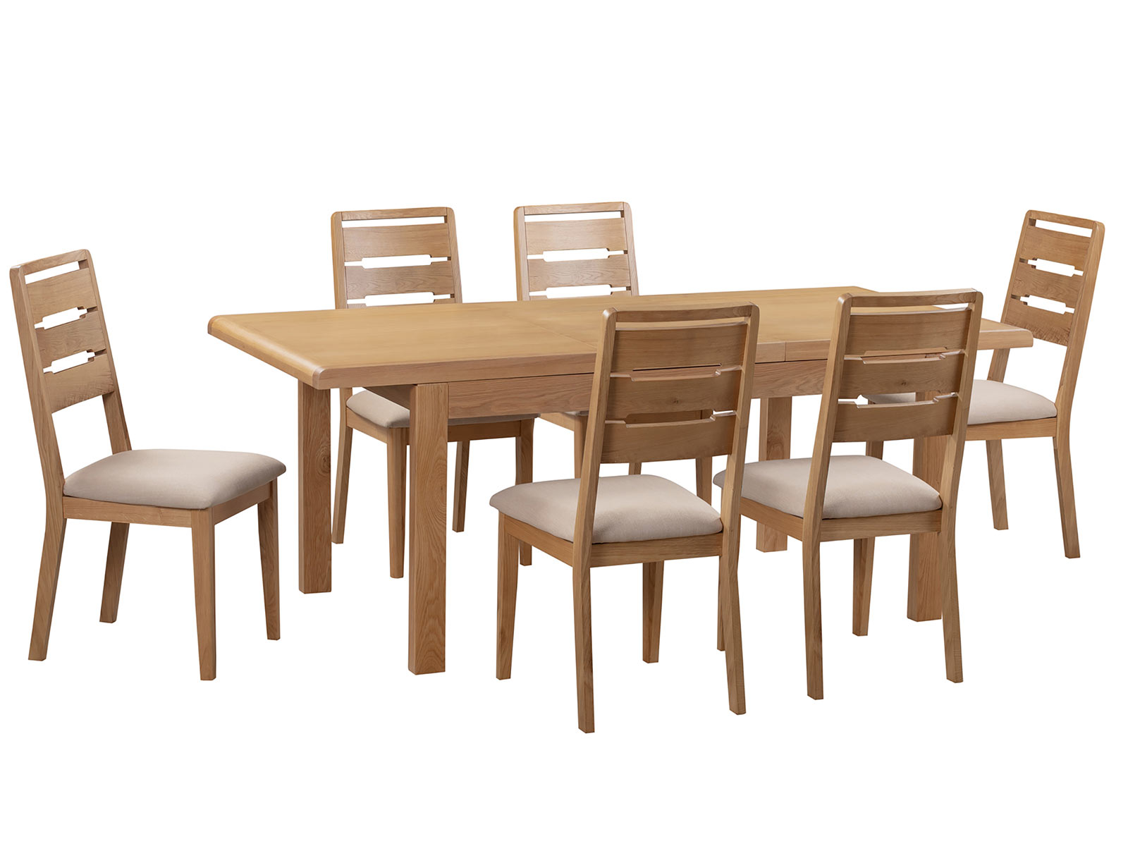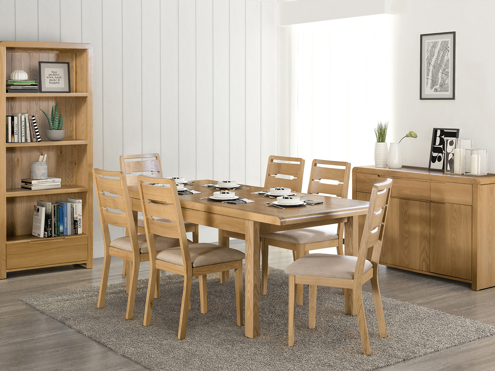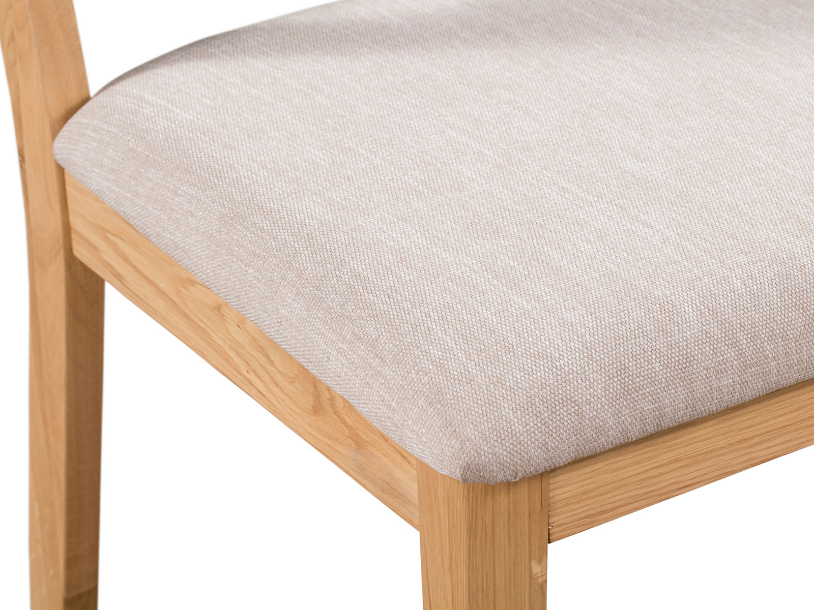 Crafted from solid oak and oak veneers, the Curve combines clean lines with a gentle curved edging, adding a modern, retro feel to any dining area. Featuring a cut-out back to mimic the recessed handles the range has, the Curve Dining Chair features a padded linen seat, allowing you and your guests to reach maximum comfort