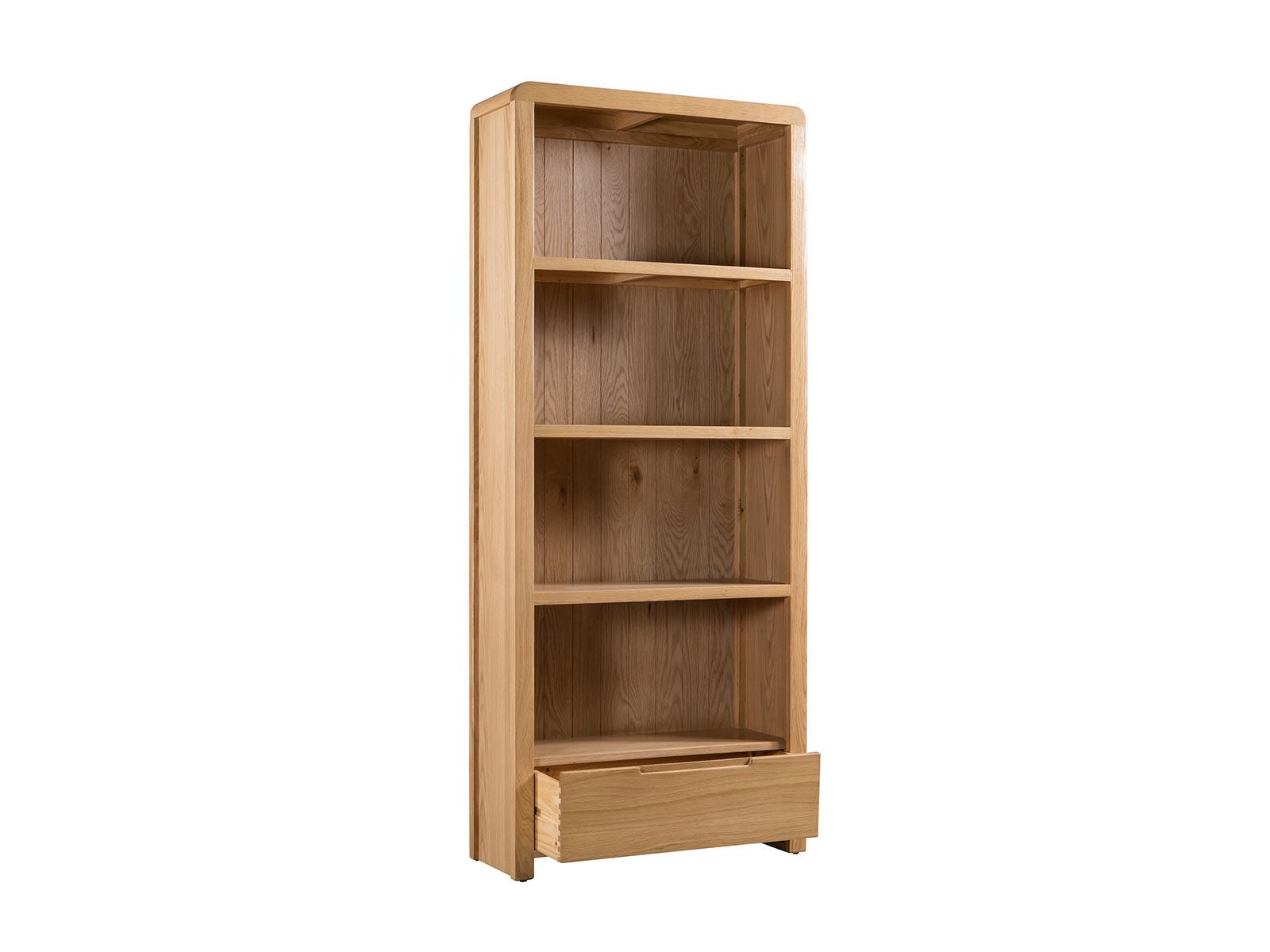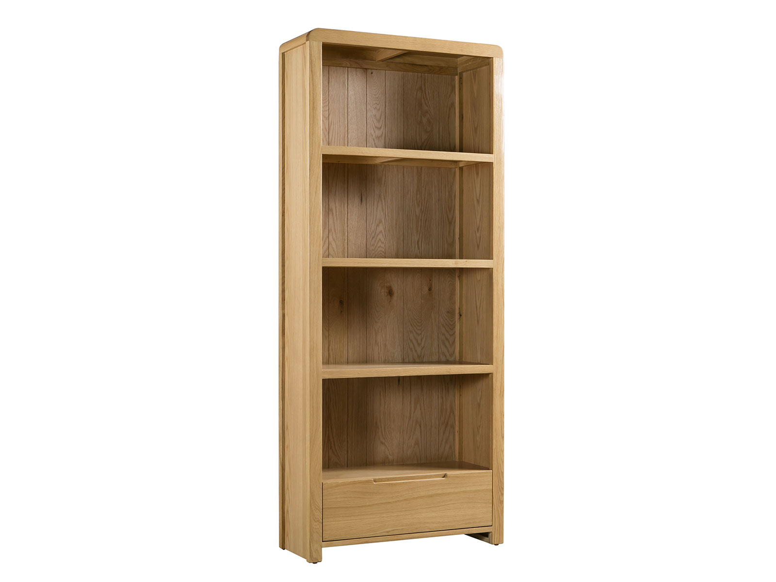 Crafted from solid oak and oak veneers, the Curve combines clean lines with a gentle curved ediging, adding a modern, retro feel to any dining area. The Curve Tall Bookcase offers four shelves with ample space, along with a large drawer. Part of the Julian Bowen Curve Dining and Occaional Collection