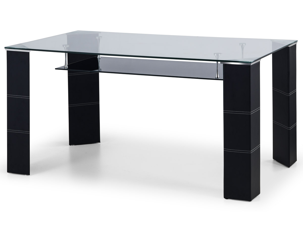 The Sleek Bold design of this Chrome and Glass Dining Range with Black Faux Leather accents will complete any dining area.