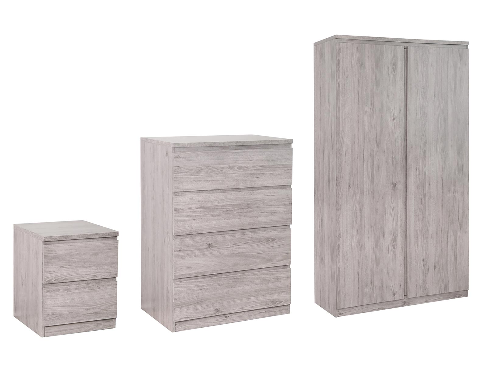 The Jupiter Grey Oak bedroom collection offers a stylish design, suitable for a wide range of modern bedrooms.The sleek, contemporary design features a modern grey oak effect frame. The Jupiter range features a 2 drawer bedside, 4 drawer chest and a 2 door wardrobe. Also available in a High Gloss White & Oak Finish.