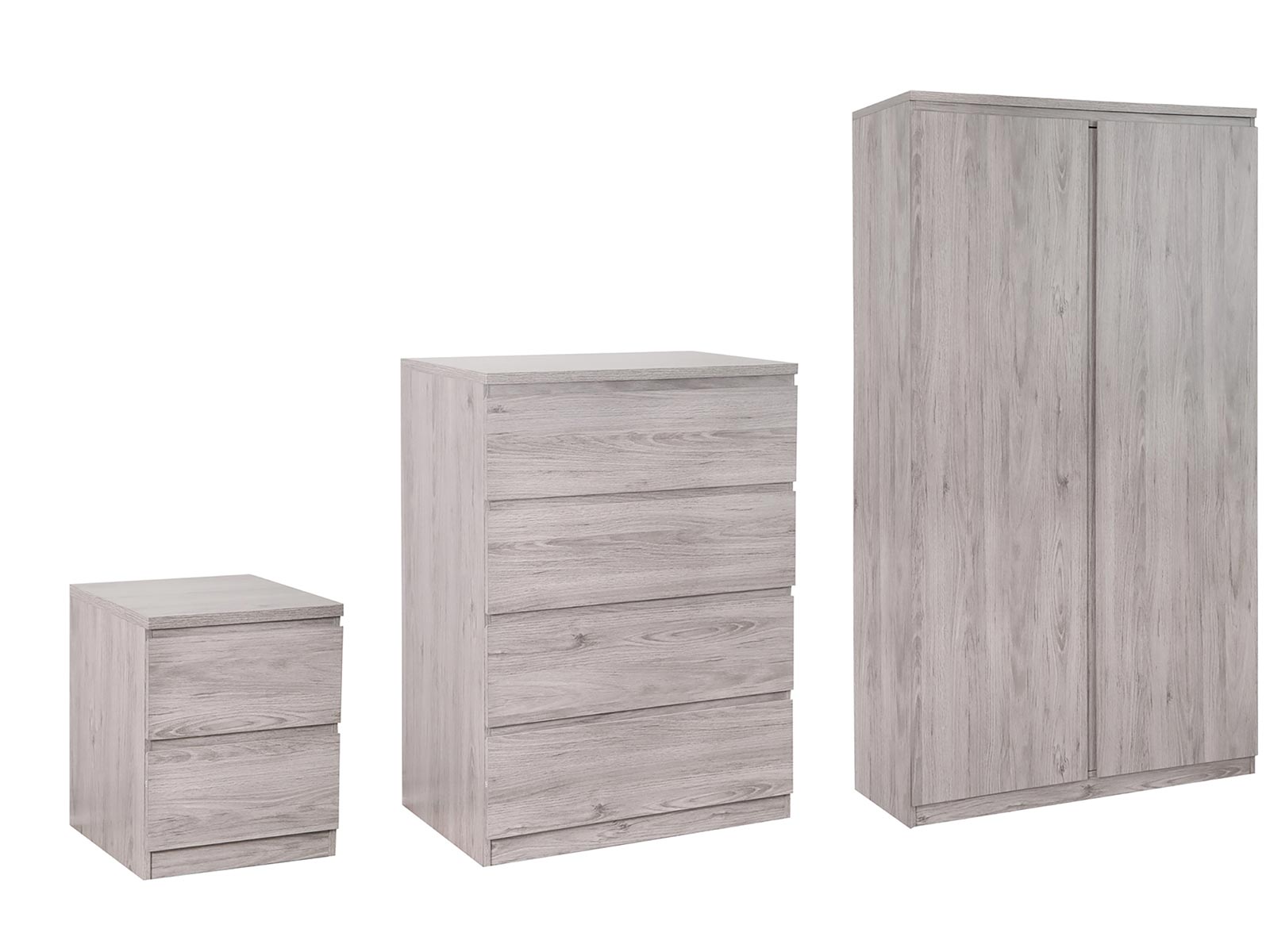 The Jupiter Grey Oak bedroom collection offers a stylish design, suitable for a wide range of modern bedrooms. The sleek, contemporary design features a modern grey oak effect frame. The Jupiter range features a 2 drawer bedside, 4 drawer chest and a 2 door wardrobe. Also available in a High Gloss White & Oak Finish.