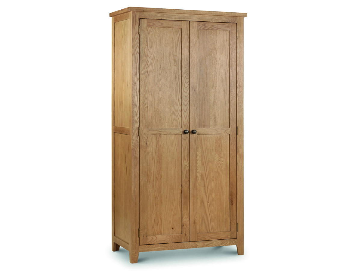 The Marlborough Oak 2 Door Wardrobe is constructed from solid American White Oak and Oak Veneers; with a 30mm chunky top; panelled doors and a sumptuous waxed finish.