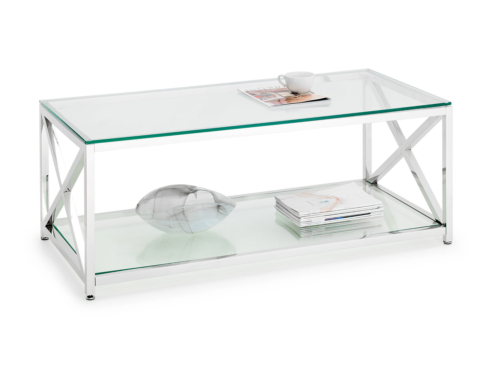The lavish Miami occasional collection will add a touch of class and luxury to any home. Taking inspiration from the Art Deco period, the Miami features a striking cross frame design. Crafted from a high quality stainless steel frame and tempered glass, this coffee table provides a shelf underneath for additional storage.