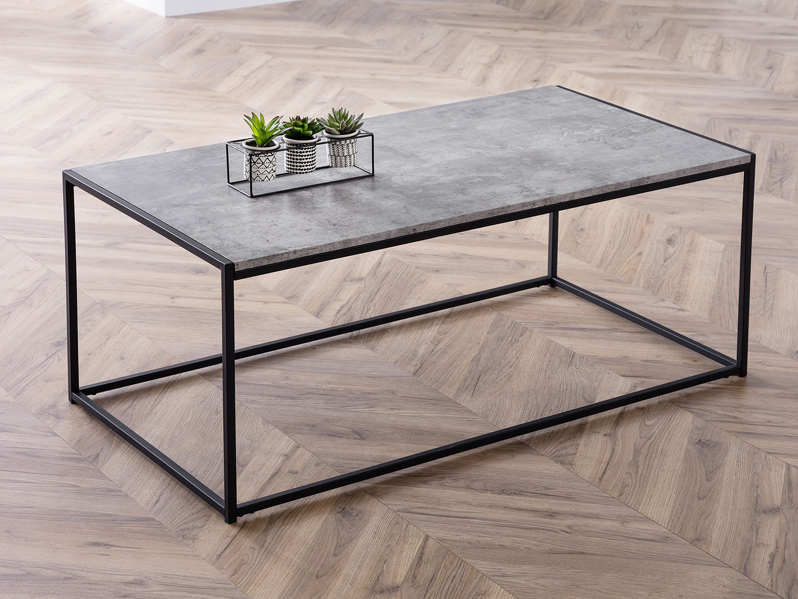 Simplistic in design with a contemporary style, the Staten Coffee Table will add a stunning industrial look to any living and dining area. Constructed from a black coated metal frame, complemented by a striking concrete effect tops, to create a very stylish, modern product. Part of the Julian Bowen Staten Dining and Occasional Collection.