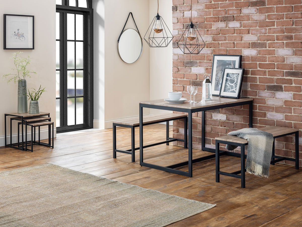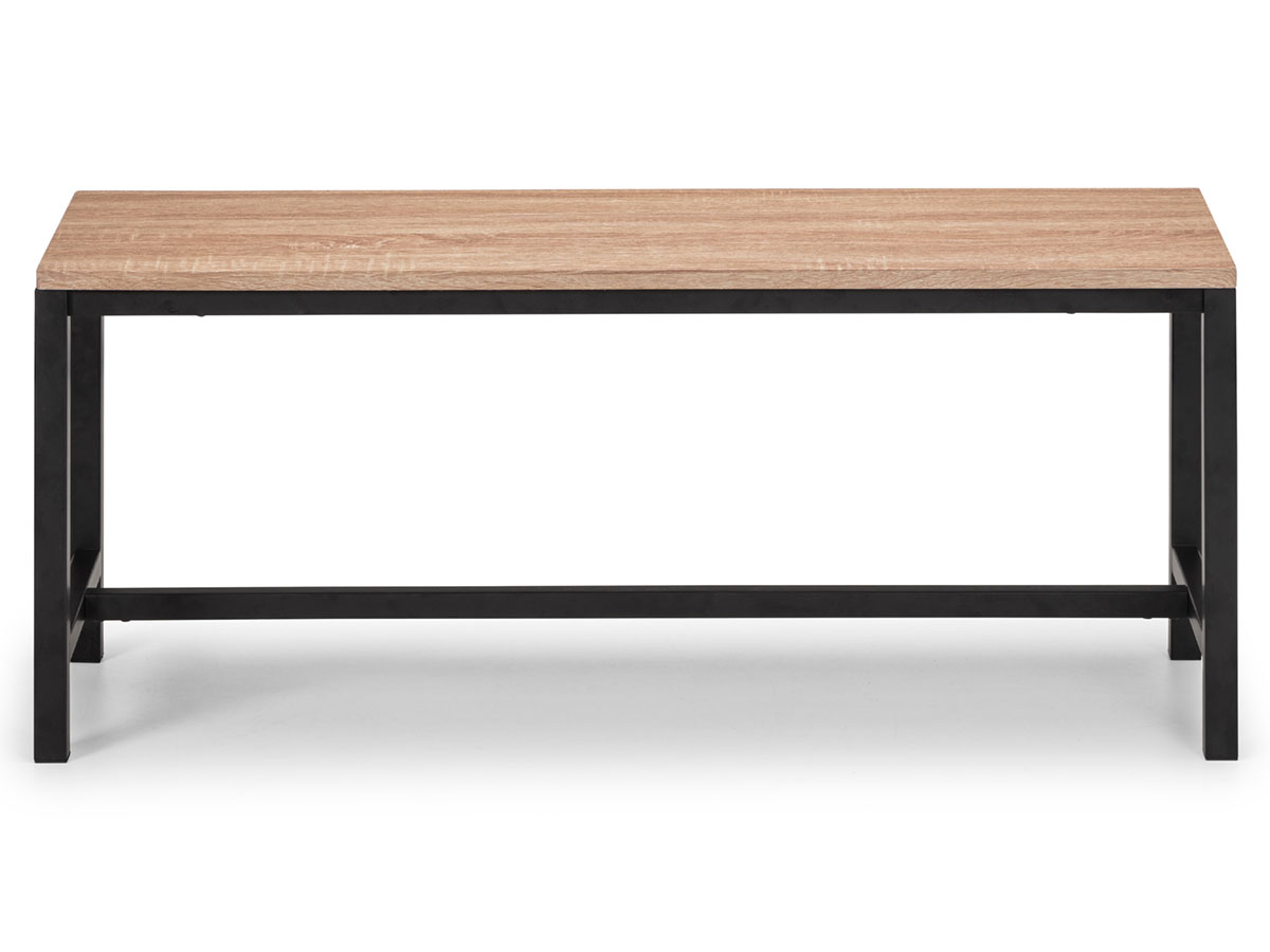 A cool, modern dining bench designed to add a contemporary touch to any dining space. Its simple clean lines, delineated by a subtle, black coated metal frame are complemented perfectly by a warm, sonoma oak foil, to create a very stylish and sleek product. The perfect match for the Tribeca Dining Table, creating a modern atmosphere within your home.
