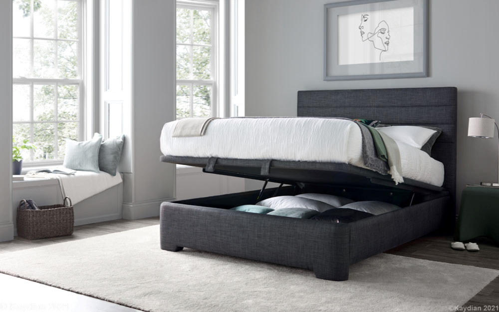 Upholstered in a soft shade of grey or slate fabric the Appleby model is a versatile storage bed.