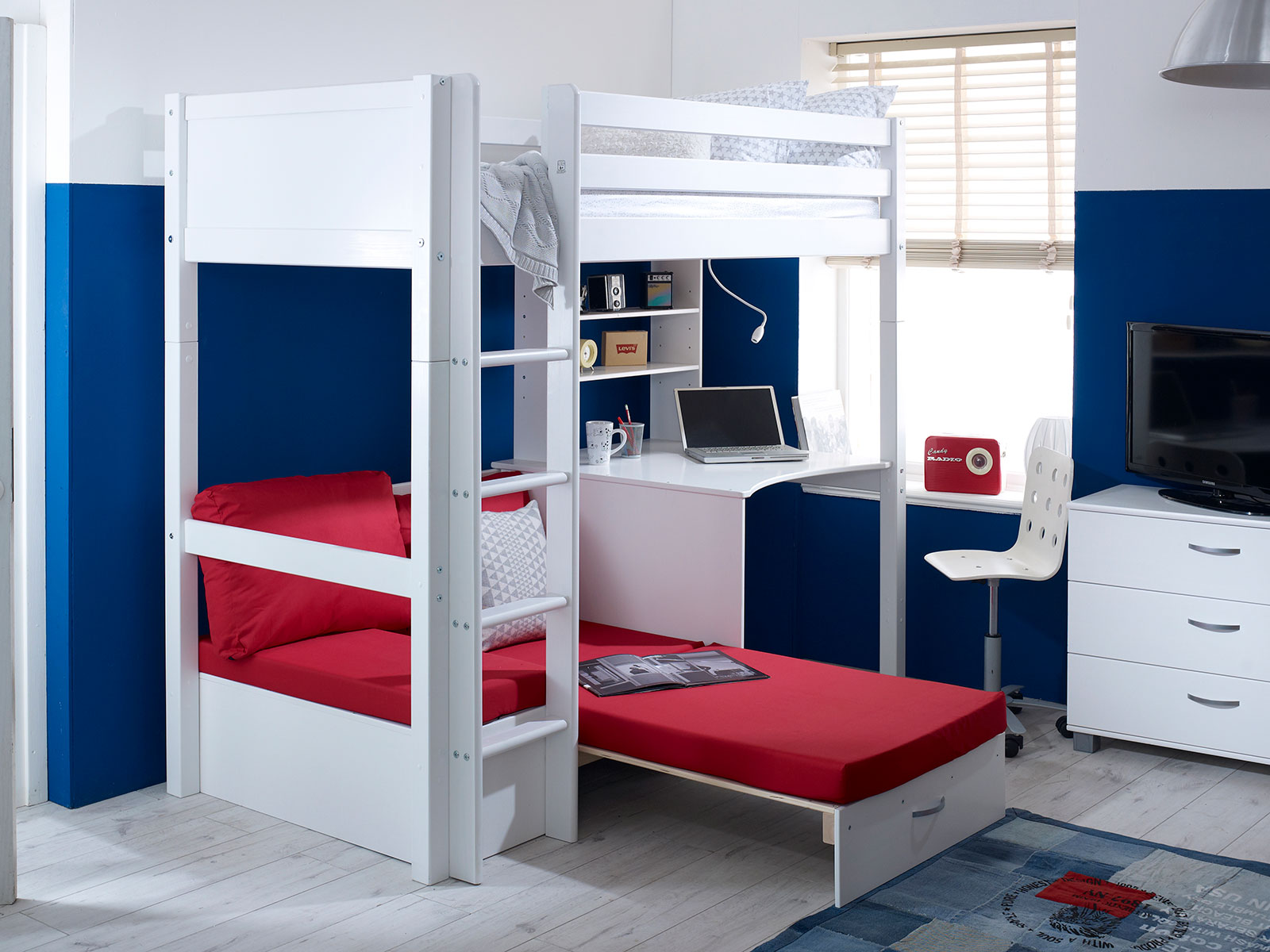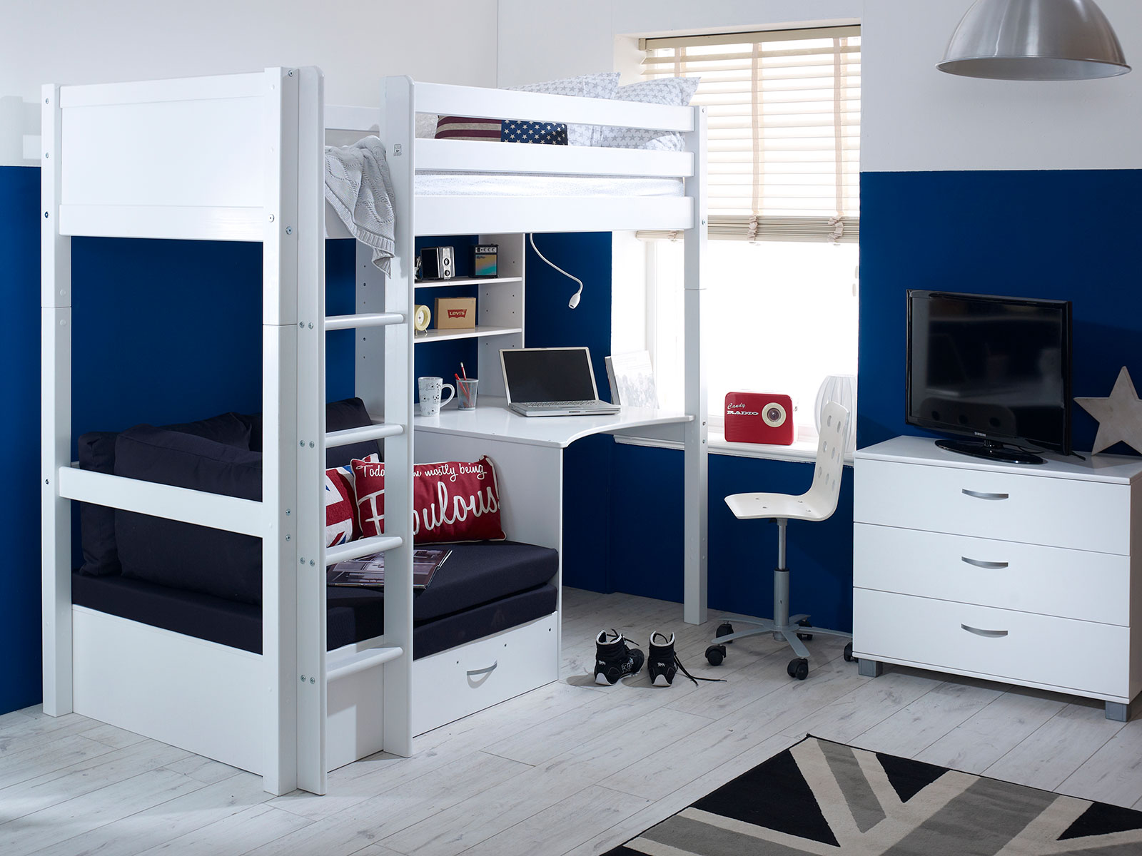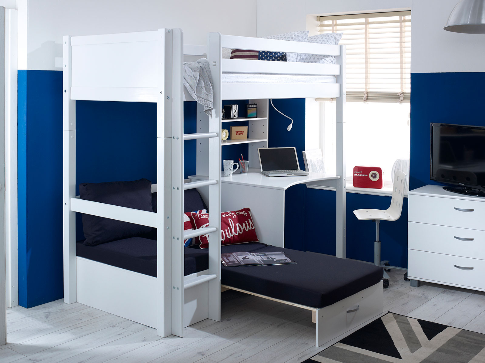 The Kids Avenue most versatile highsleeper is the Nordic highsleeper 3 which offers space to sleep, work and rest.