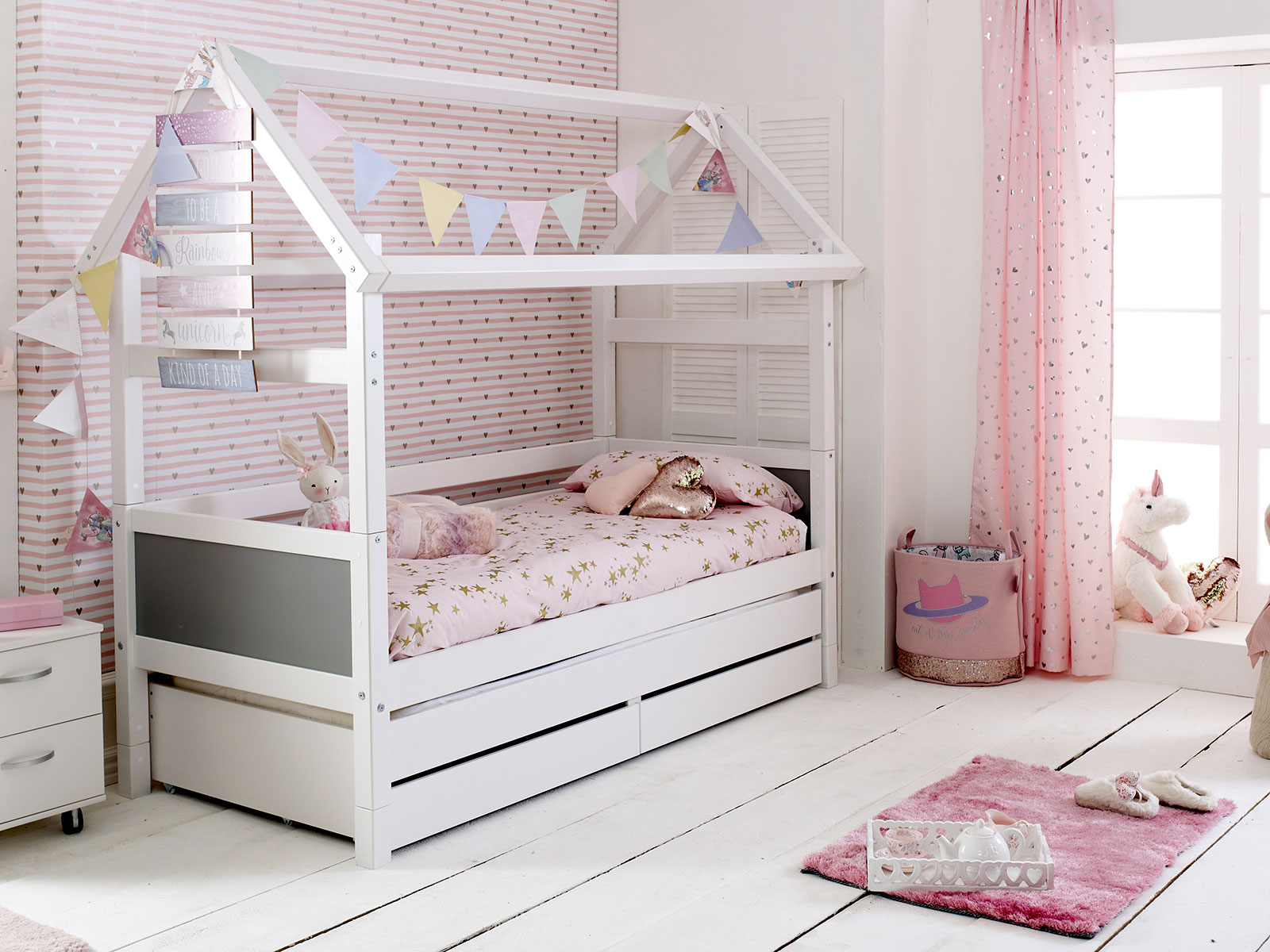 This beautiful Nordic playhouse 2 bed in white features of a pair of underbed drawers and a trundle bed and is 16cm taller than the Nordic Playhouse 1.