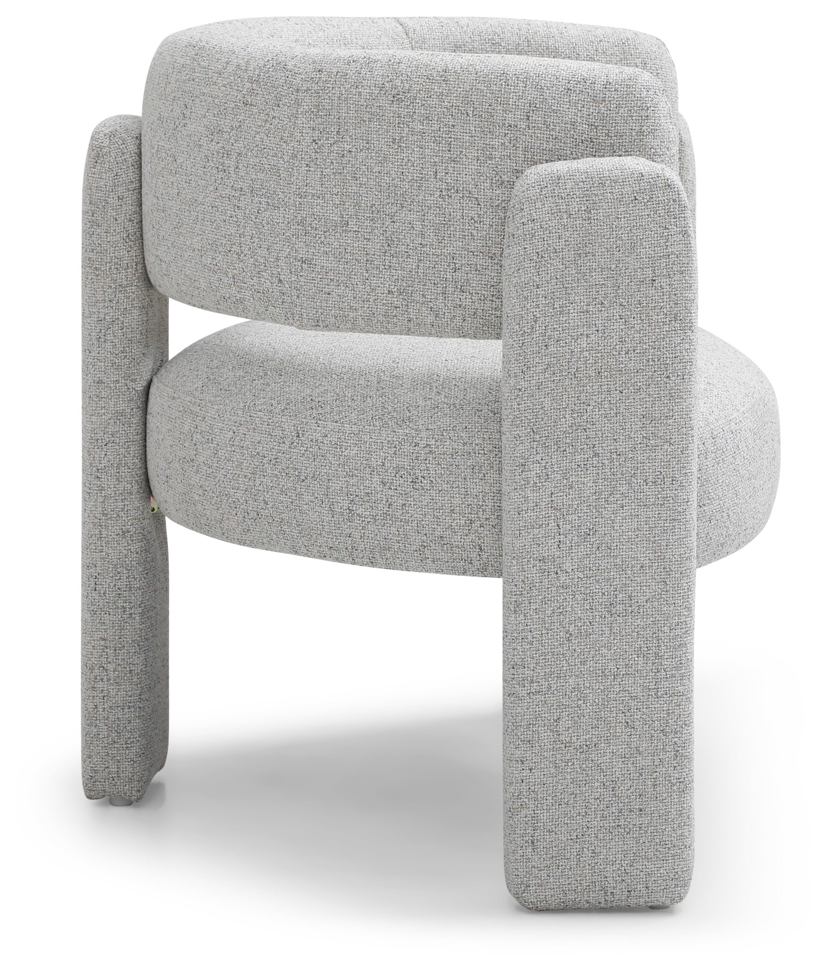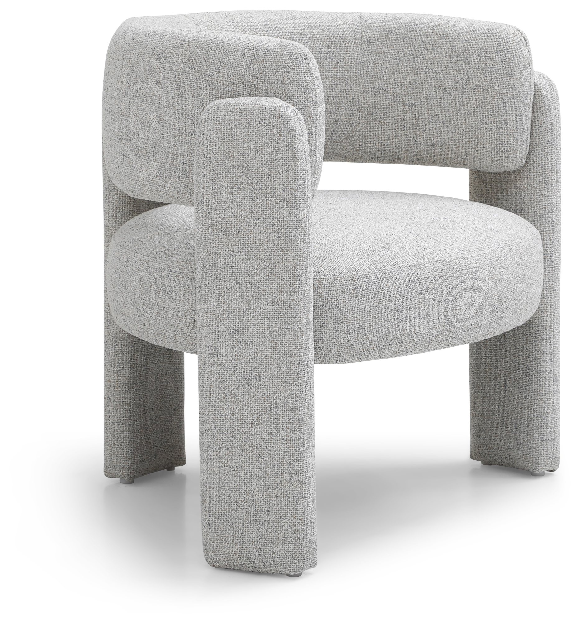 A modern, eye-catching three-legged chair, fully upholstered in a rich rust textured weave. Featuring a tub-inspired floating backrest and plush seat, this statement occasional chair adds bold style to any space