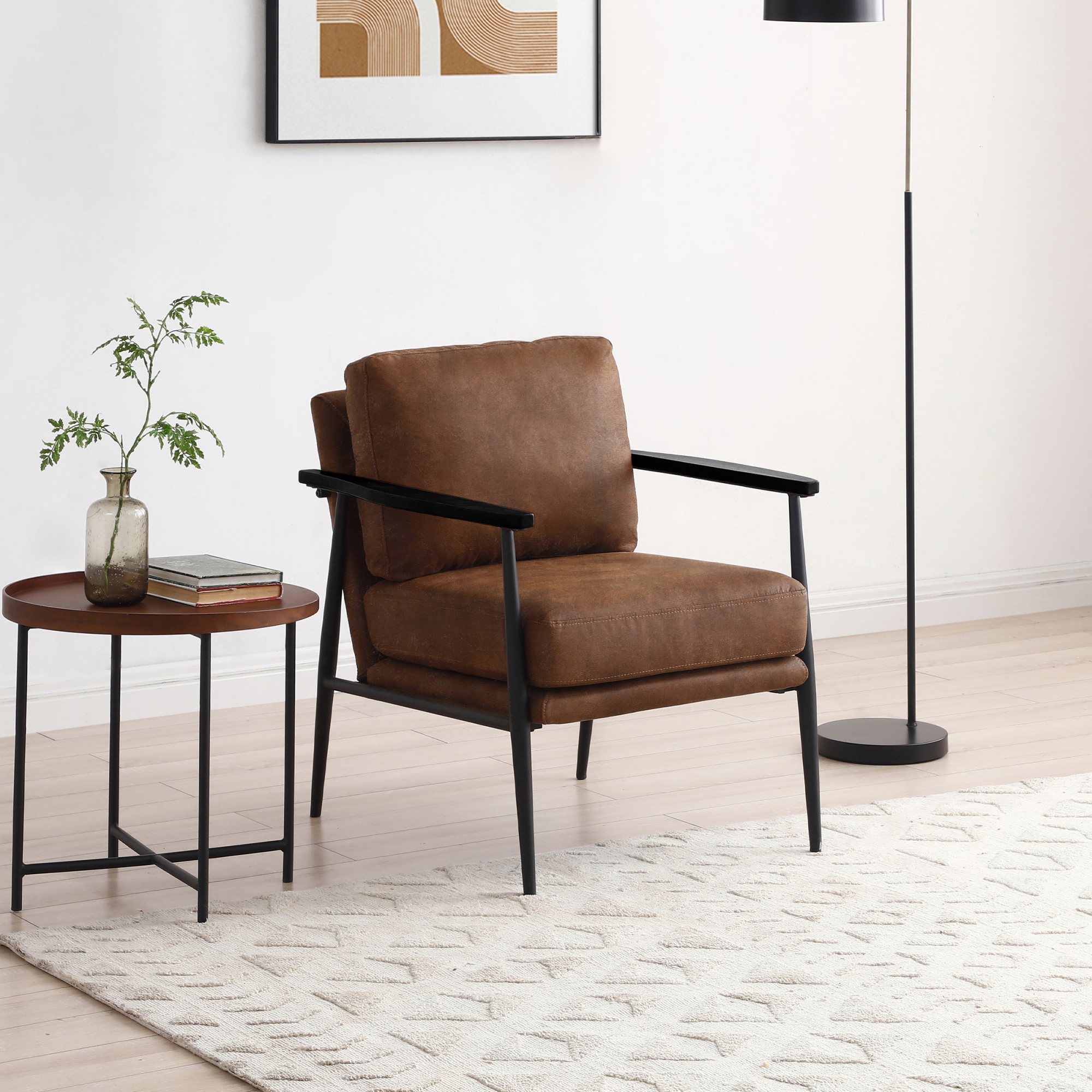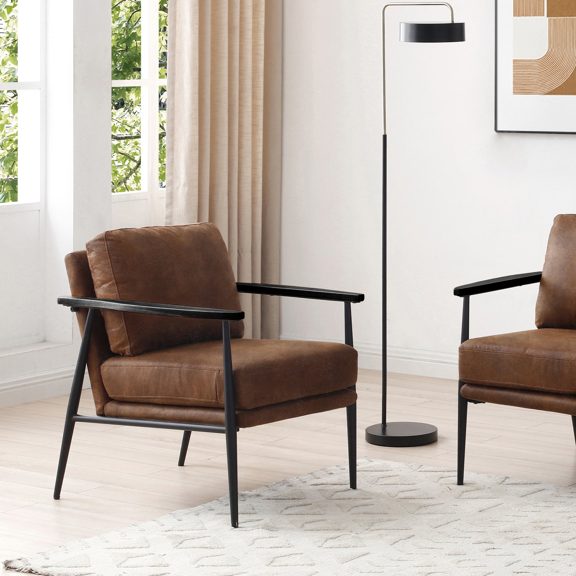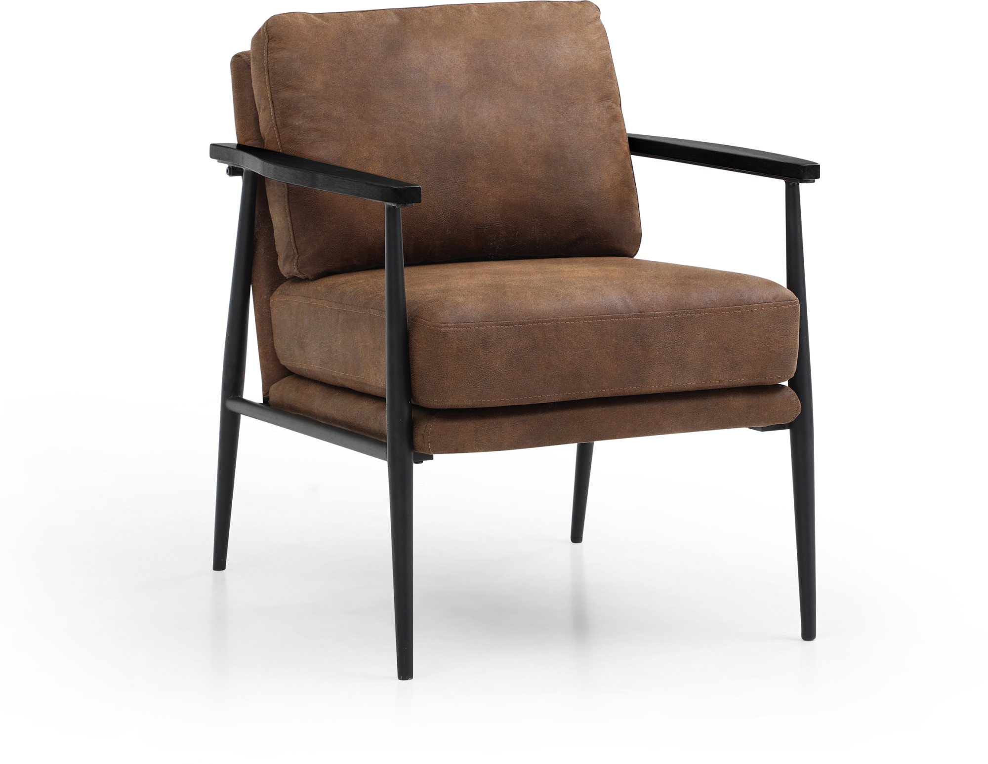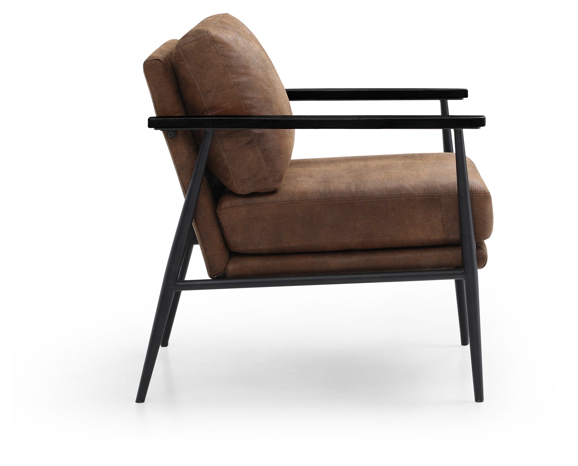 The Bronx range is made up of a Chair and 2 Seater. Available in a Soft Brown PU material with a black metal frame and legs, and wooden armrests they evoke a contemporary urban feel.