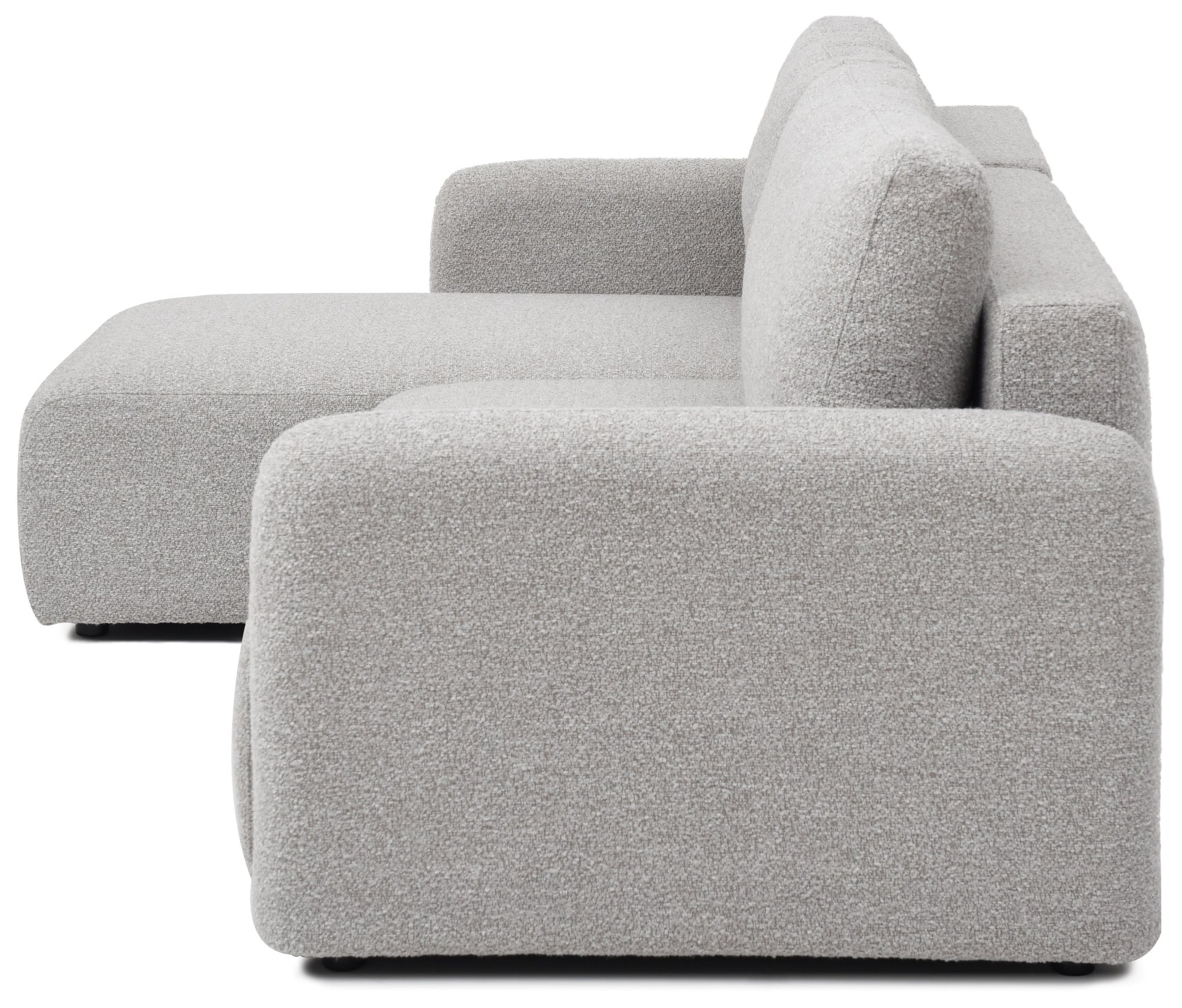The Cloud corner sofabed features a pull-out mechanism with a click clack back. With soft rounded edges and cushions and finished in a Natural soft boucle fabric. The range includes a Corner Sofabed and a 2 Seater Sofabed.