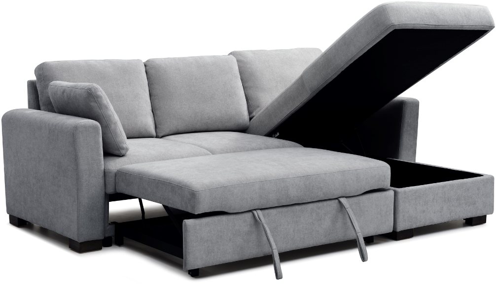 The Sorrento corner sofabed features a pocket sprung and foam seat, large sleeping area, 2 waist cushions and additional storage space under the chaise section. Available in new Grey and Natural Chenille.