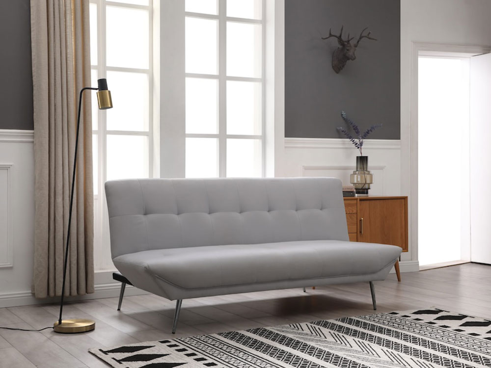 A three-seater sofa bed that makes a fantastic addition to the living room, spare room, or even a bedroom to maximise space. The plump upholstery is instantly inviting, whilst the minimal frame and chrome tapering legs speak of luxury and refinement.