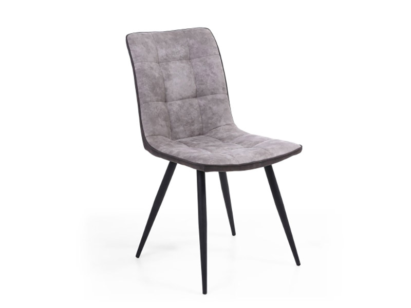 An invitingly curved modern twin tone suede effect dining chair. Light grey padded seat with smooth dark grey rear. Feature zip on the seat back. Supplied with black rubberwood tapered x frame legs. Assembly required. Sold in boxes of 2.