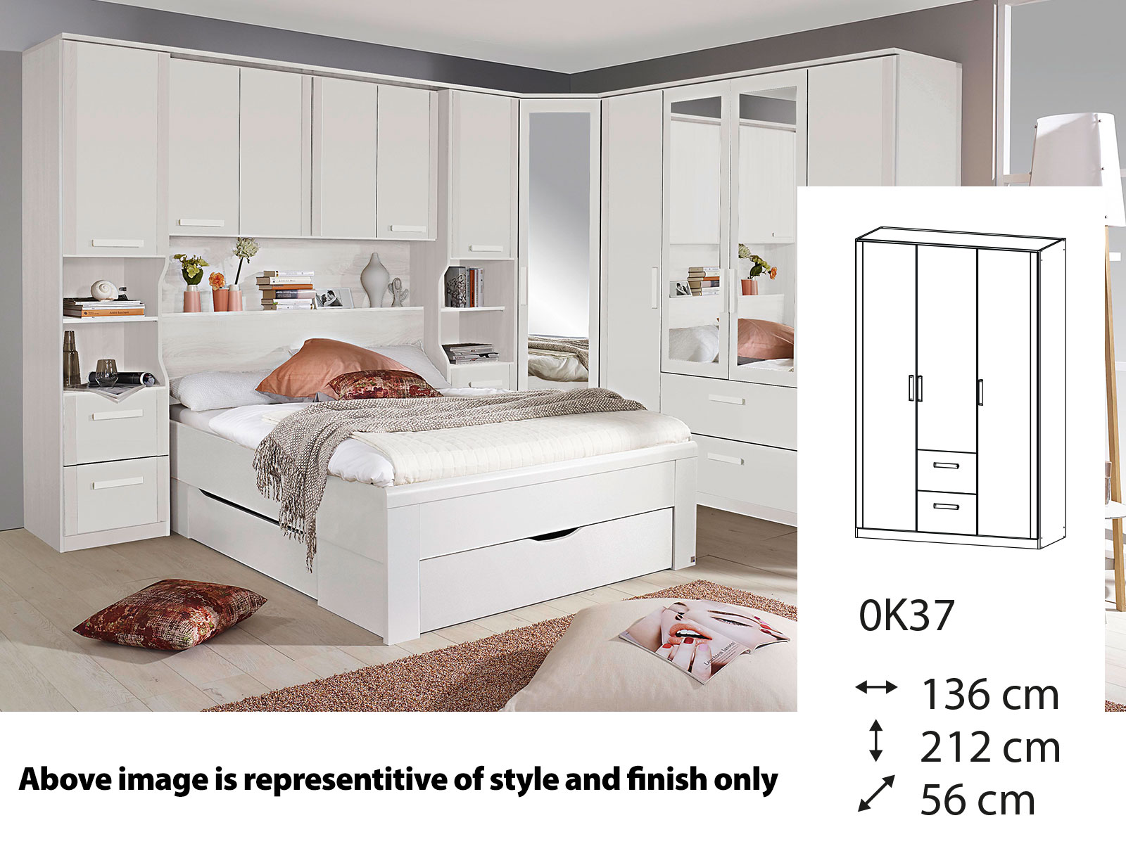The Rauch Rivera Collection features an elegant overbed with plenty of storage space, optimum utilization and functionality in every detail – Rivera convinces with these attributes. Overbed units, beds with plinth drawers, a great choice of hinged door wardrobes and corner robe solutions in Sonoma oak colour can be easily arranged with each other.