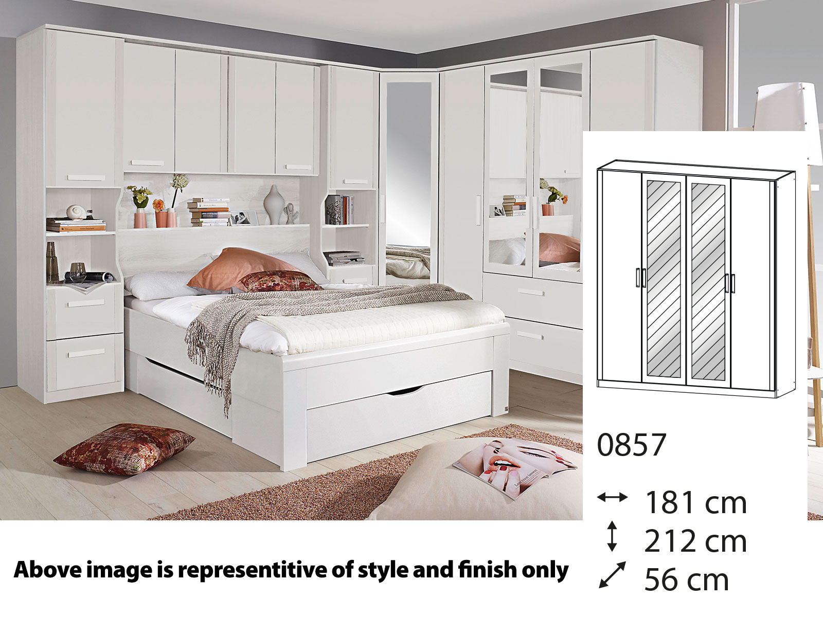 Rauch Rivera Hinged 4 Door (2 x Mirror Doors) Wardrobe + Cornice 181cm x 212cm