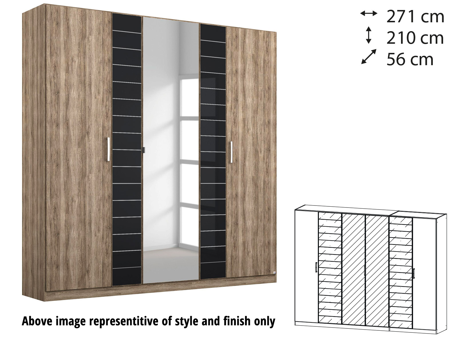 Rauch Terano Wardrobe – 6 Door, 2 Mirror Doors, 2 Glass Doors (With Cornice)