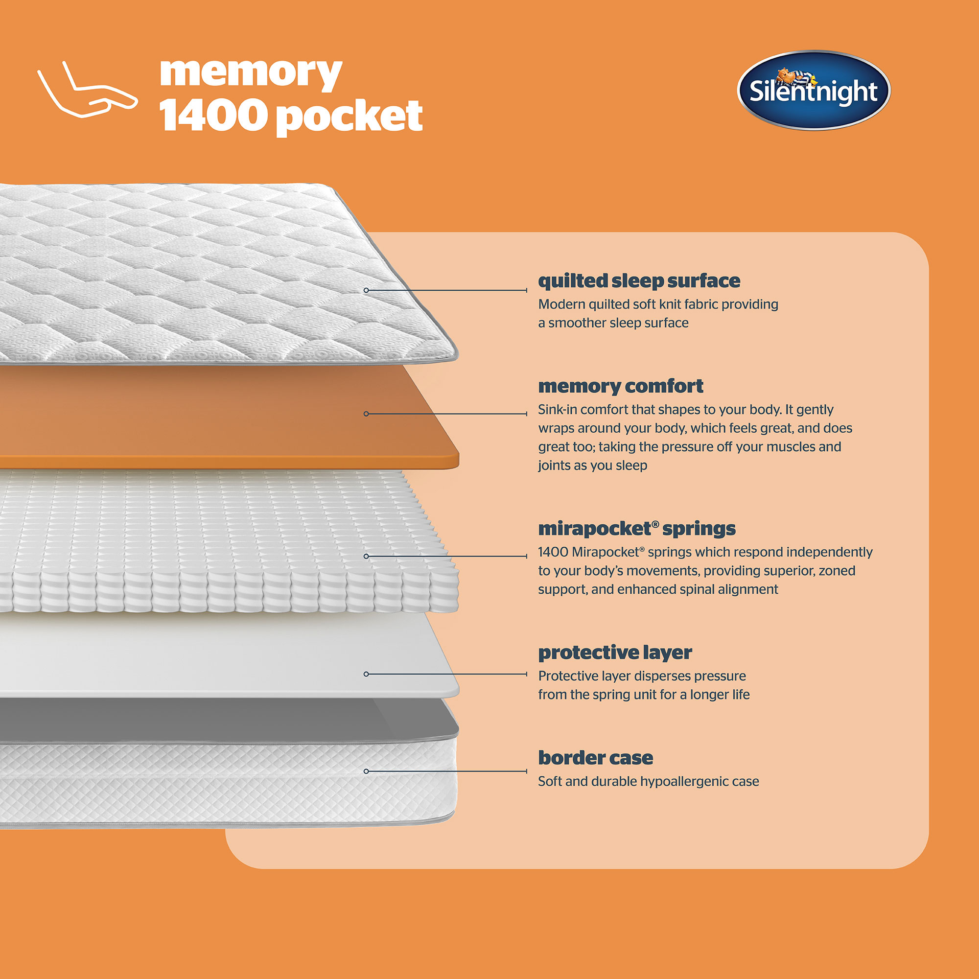 Relieve pressure while you sink in to a deep sleep on our memory foam. Offering superior zoned support through premium foam and 1400 Mirapocket® springs for a refreshing and rejuvenating slumber.