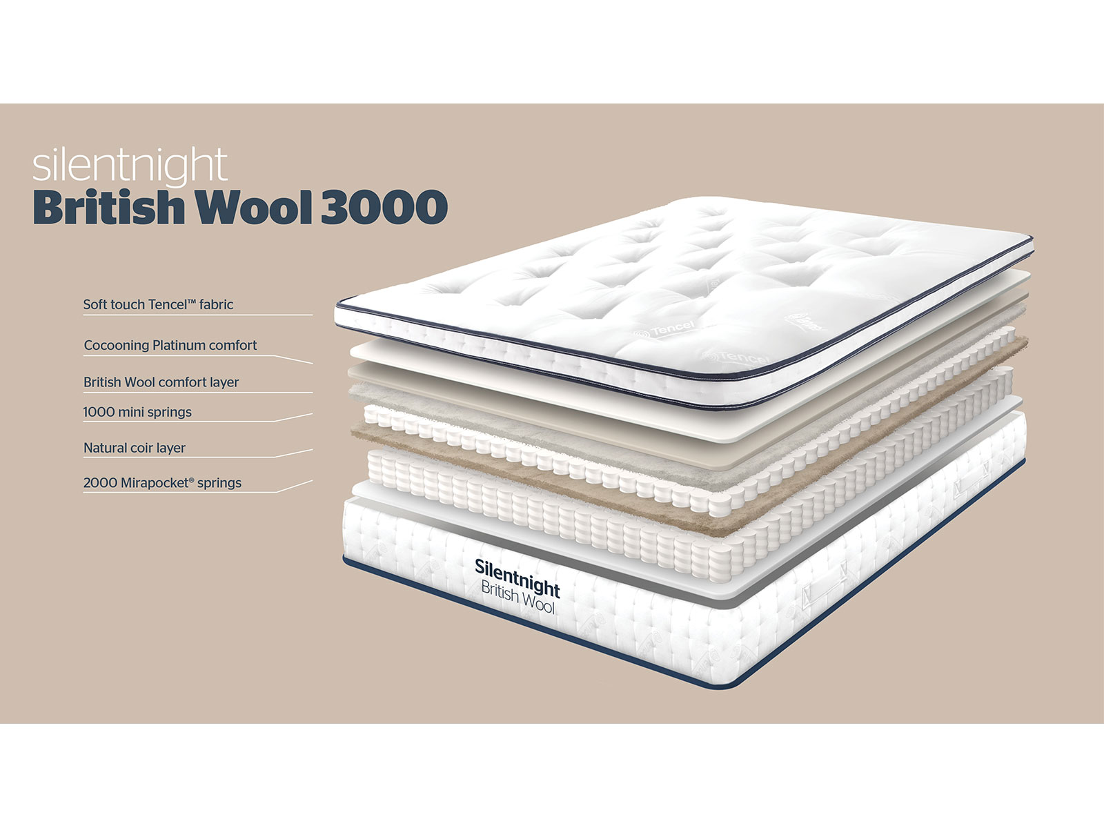 Engineered by nature.Silentnight’s wool range weaves together the cosy comfort of British Wool with Silentnight’s unrivalled experience. It combines great craftsmanship with a flexible and breathable material that keeps you cool in the summer and warm in the winter.Silentnight’s British Wool comes from Cheviot sheep, their soft yet sturdy fibre is perfect for mattresses, offering natural body and bounce for lasting comfort and support.