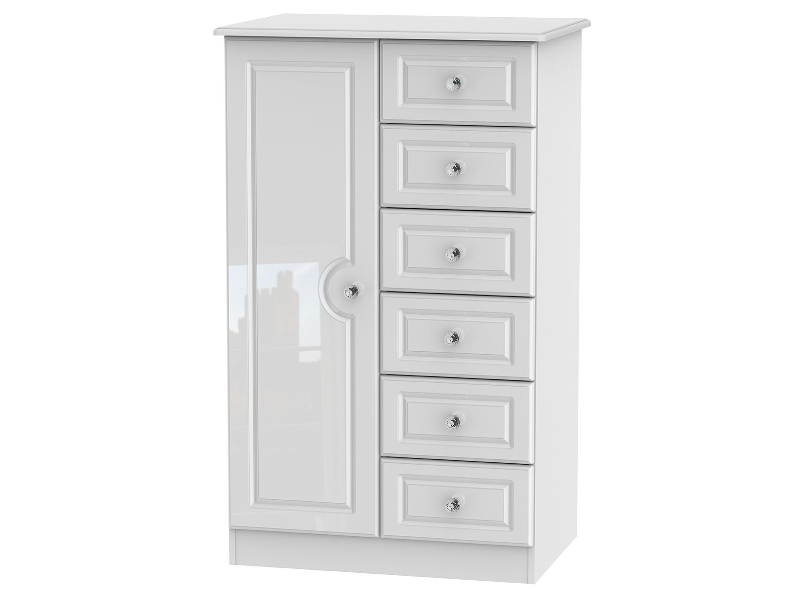 -9%The extensive Welcome Furniture Balmoral collection is available in High Gloss White or Kaschmir Gloss, each one enhanced by Crystal Handles.