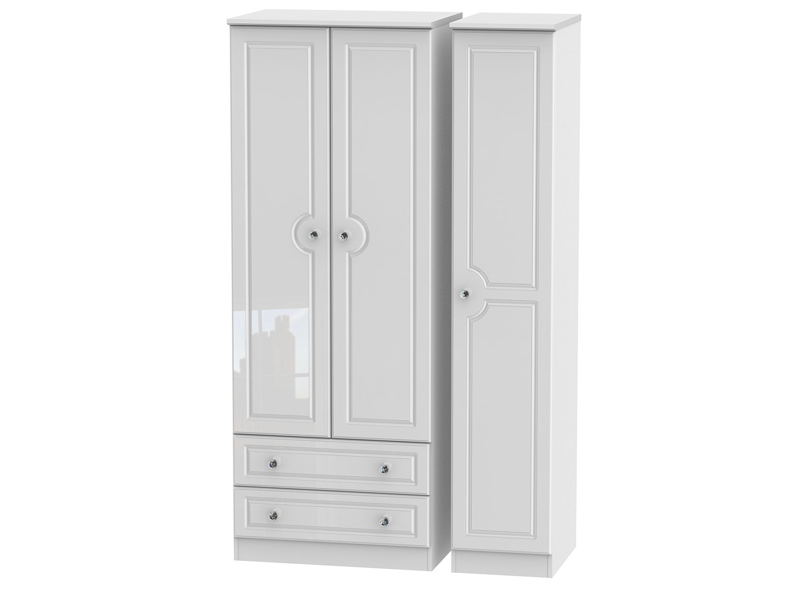 The extensive Welcome Furniture Balmoral collection is available in High Gloss White or Kaschmir Gloss, each one enhanced by Crystal Handles.