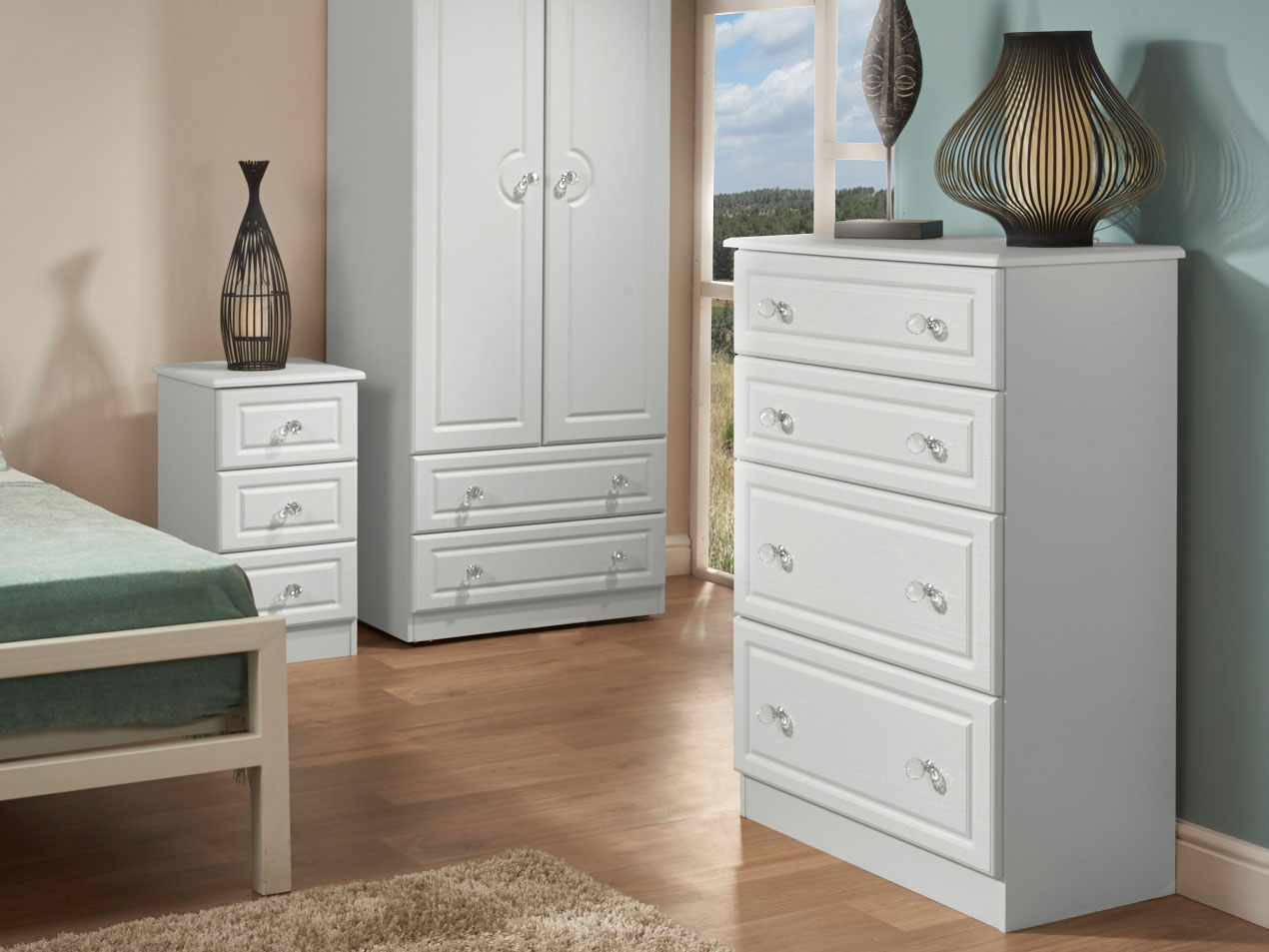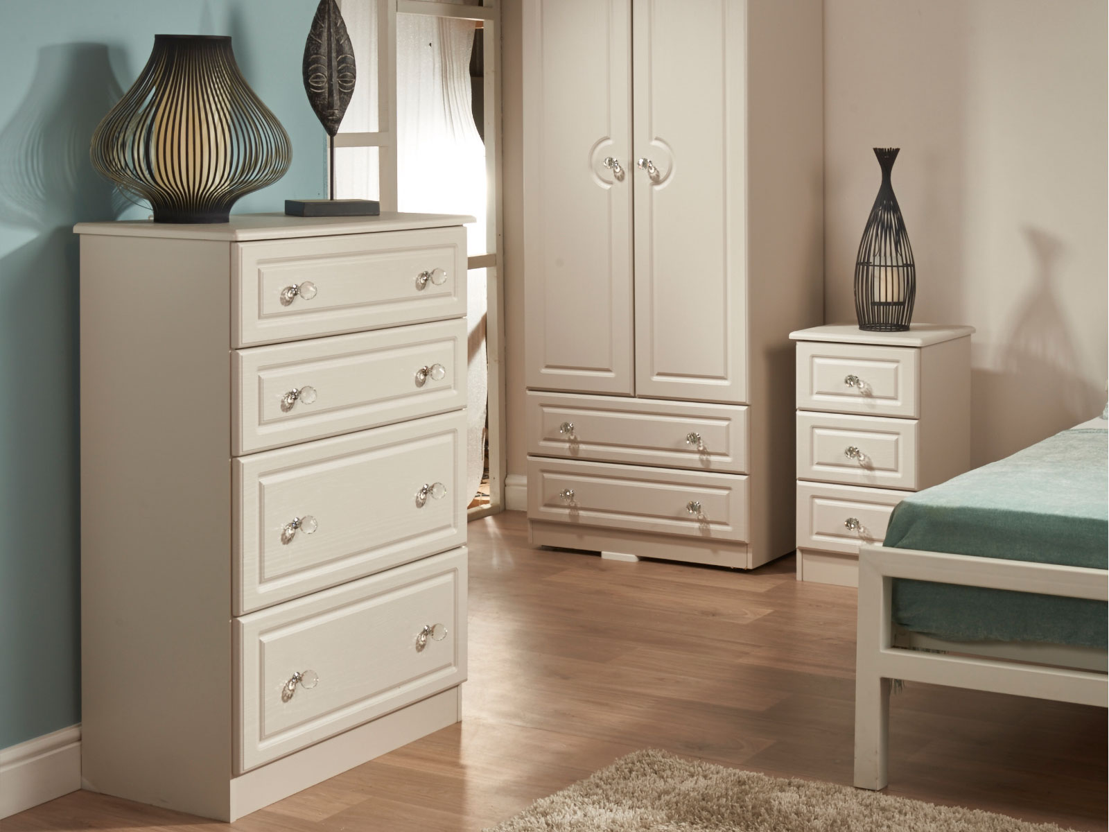 The extensive Crystal Range is available in a choice of 3 finishes, each one enhanced by crystal handles on all pieces.