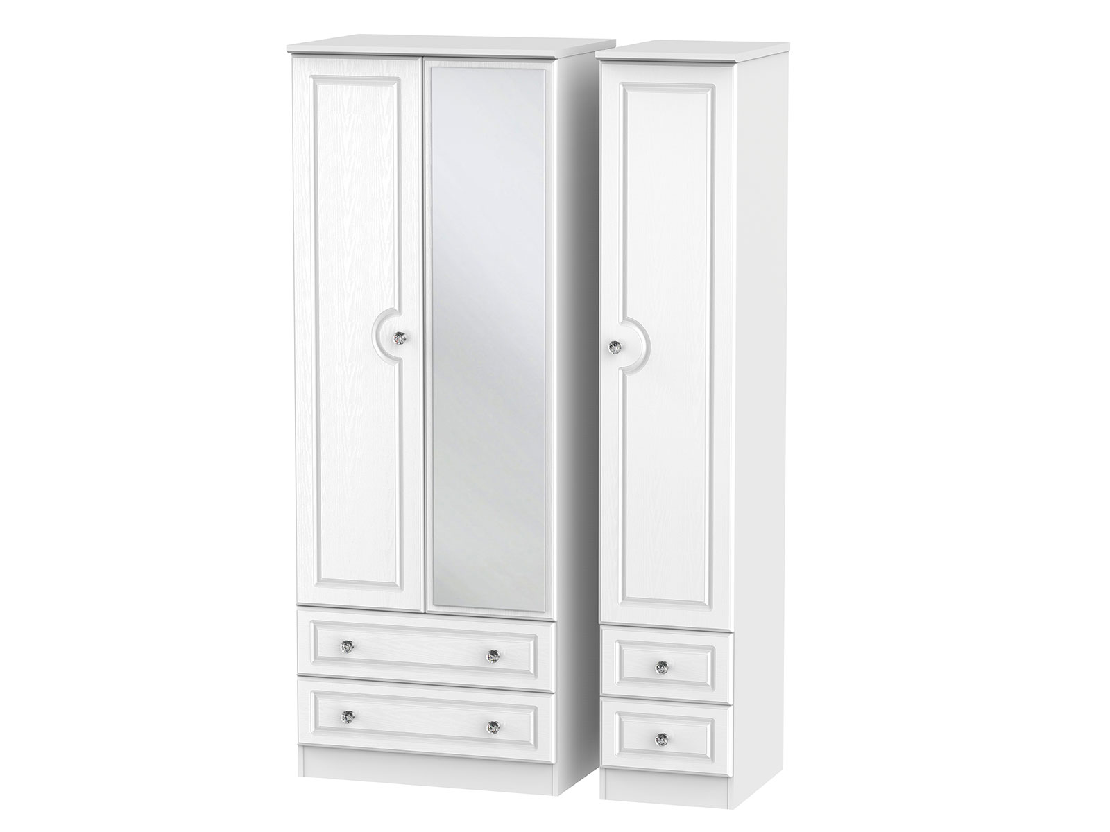 Welcome Furniture Crystal Tall Triple 2 Drawer Mirror + Drawer Wardrobe