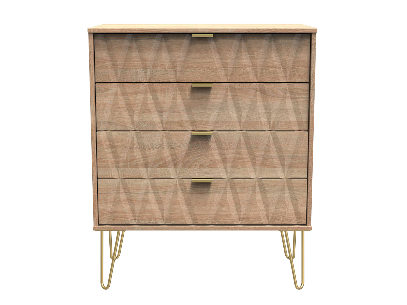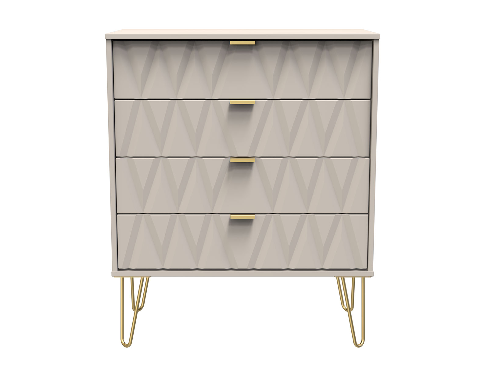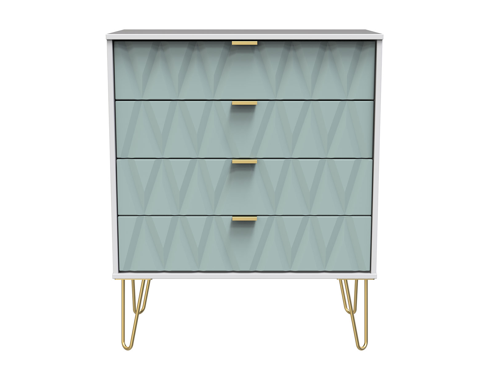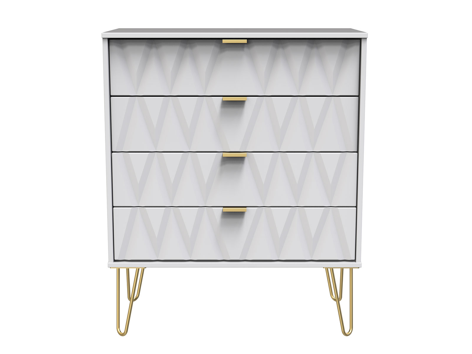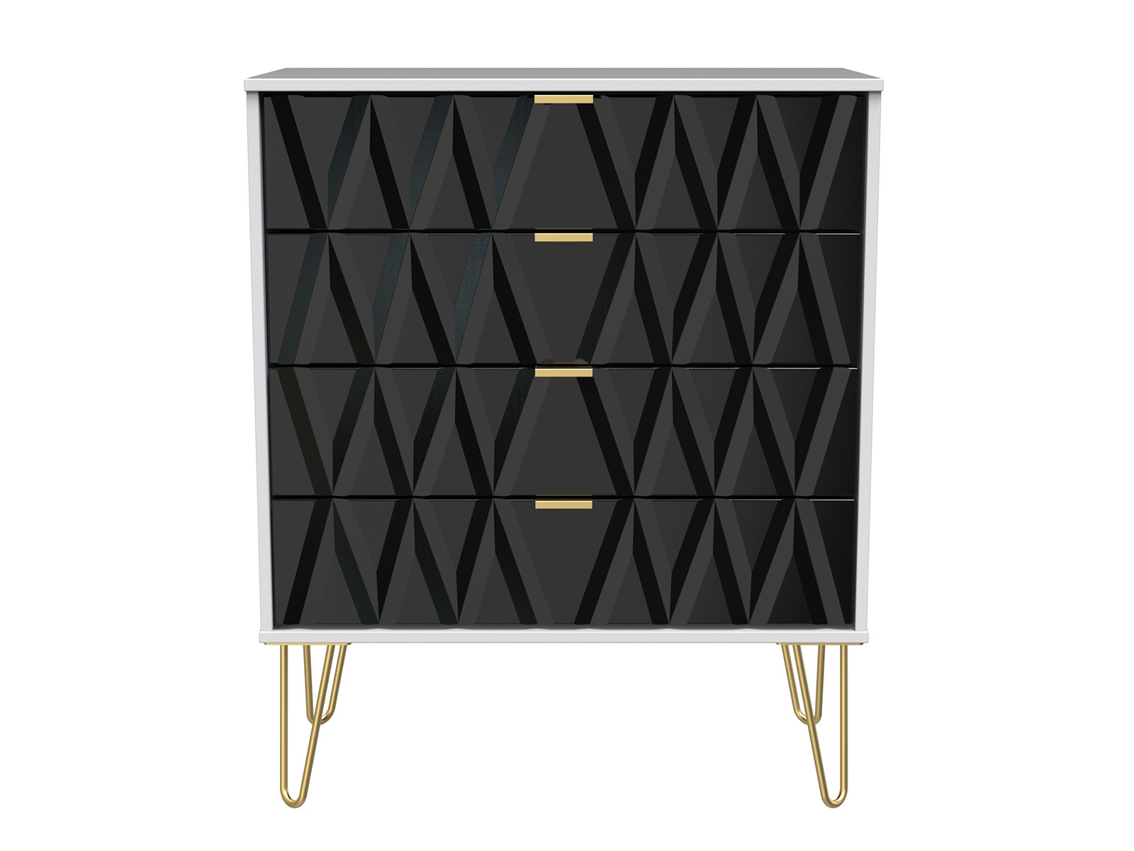 Say hello to contemporary cool with the Diamond range, with distinctive patterned drawers and a variety of colour options available to complement any interior design. Gold metal handles and sturdy hairpin legs complete the storage solution.