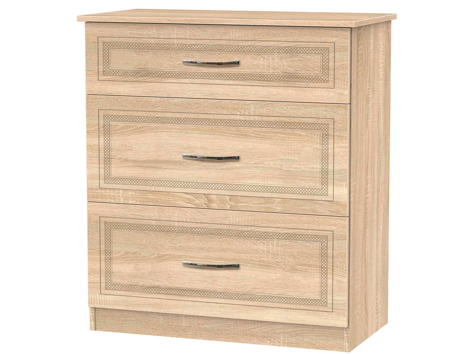 This deep 3 drawer chest of drawers is practical and stylish. Perfect for any home as a free standing storage unit.