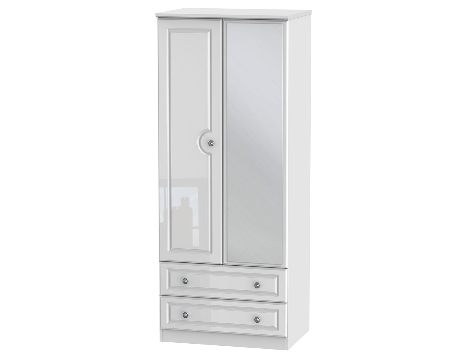 This full height double door wardrobe is perfect for any bedroom. Features the added practicality of 2 full width drawers and a external mirrored single door.