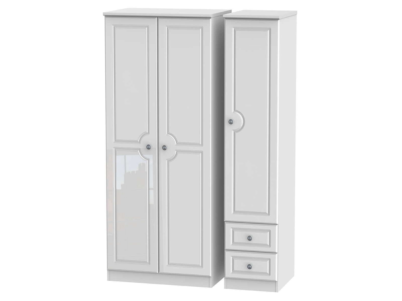 This full height triple 3 door wardrobeis perfect for any bedroom when a normal wardrobe is just not large enough. Also features 2 narrow storage drawers for added practicality.