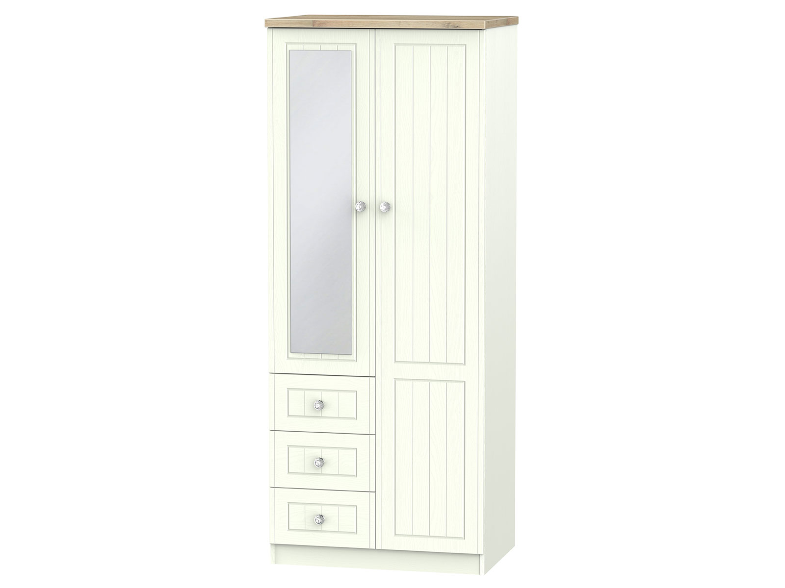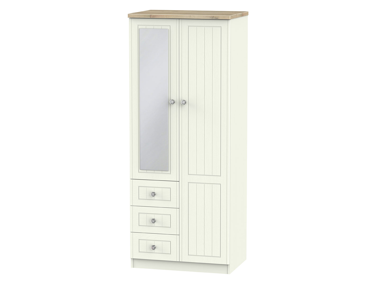 The classic, elegant Rome range is available in a range of durable scratch resistant painted wood finishes with natural wooden tops. With stylish crystal handles on all doors and drawers. All drawers come with long lasting metal drawer runners and a linen effect interior.
