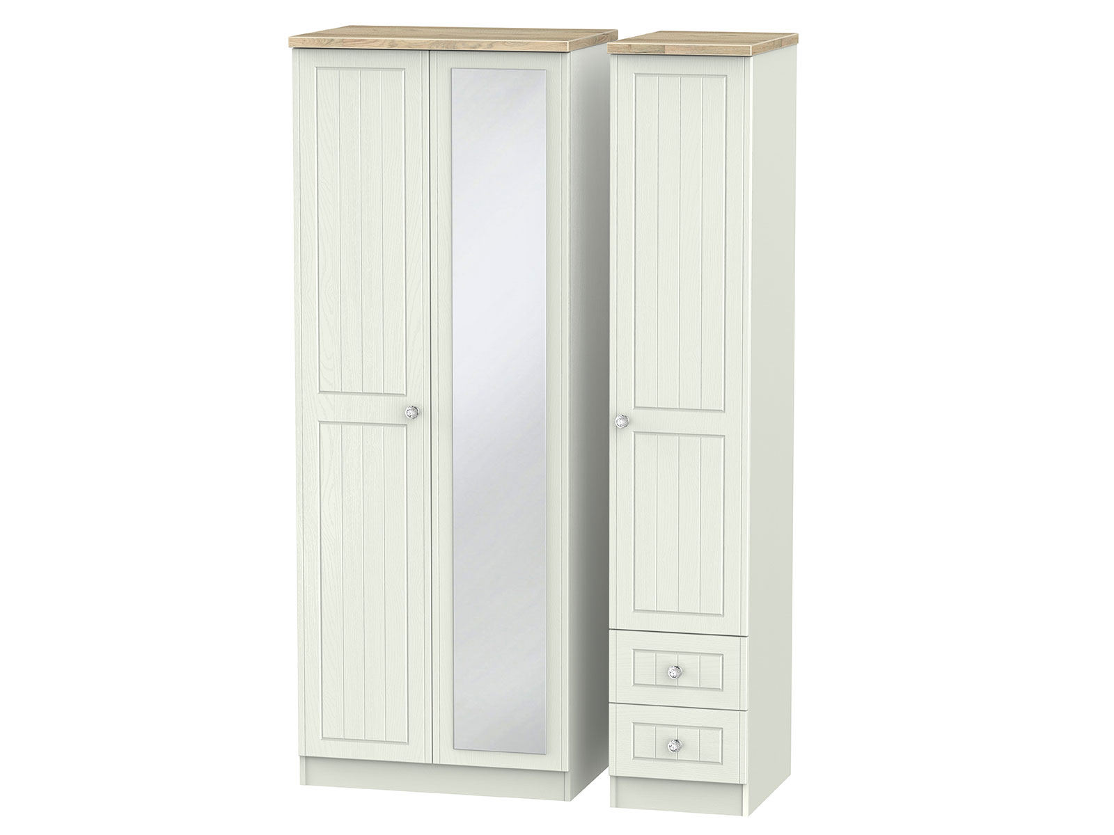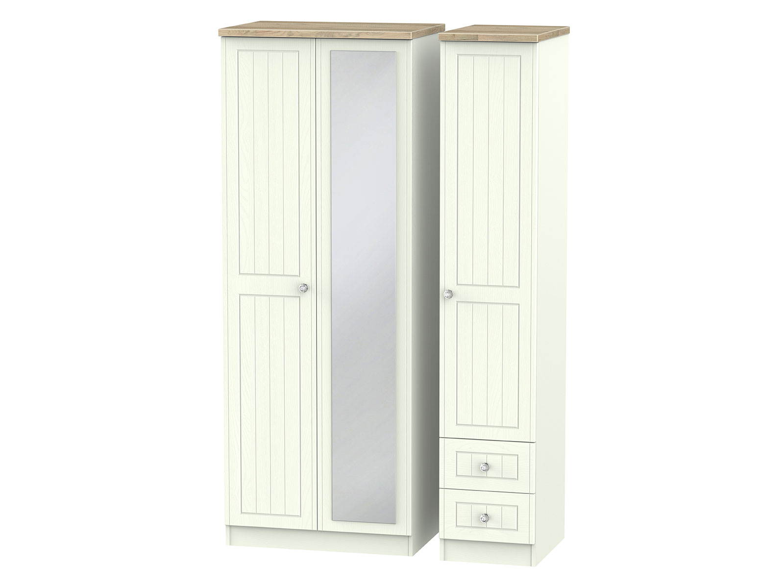 The classic, elegant Rome range is available in a range of durable scratch resistant painted wood finishes with natural wooden tops. With stylish crystal handles on all doors and drawers. All drawers come with long lasting metal drawer runners and a linen effect interior.